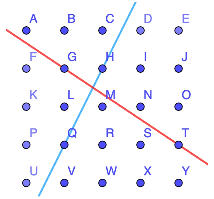 En una red de puntos como la que ves, puedes dibujar rectas entre dos puntos con distintas pendientes.