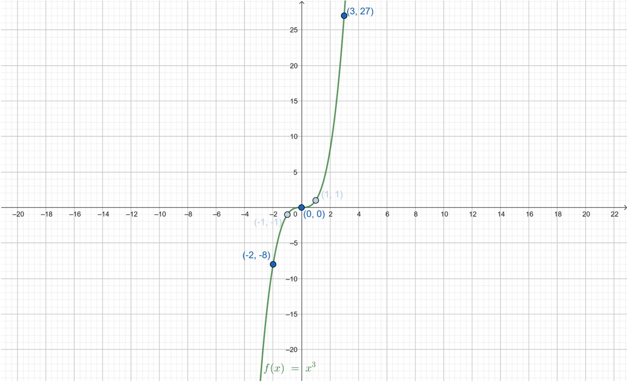 Halla los valores de la variable dependiente para distintos valores de \(x\). Por ejemplo, para \(x=-2\), \(x=0\) y \(x=3\)