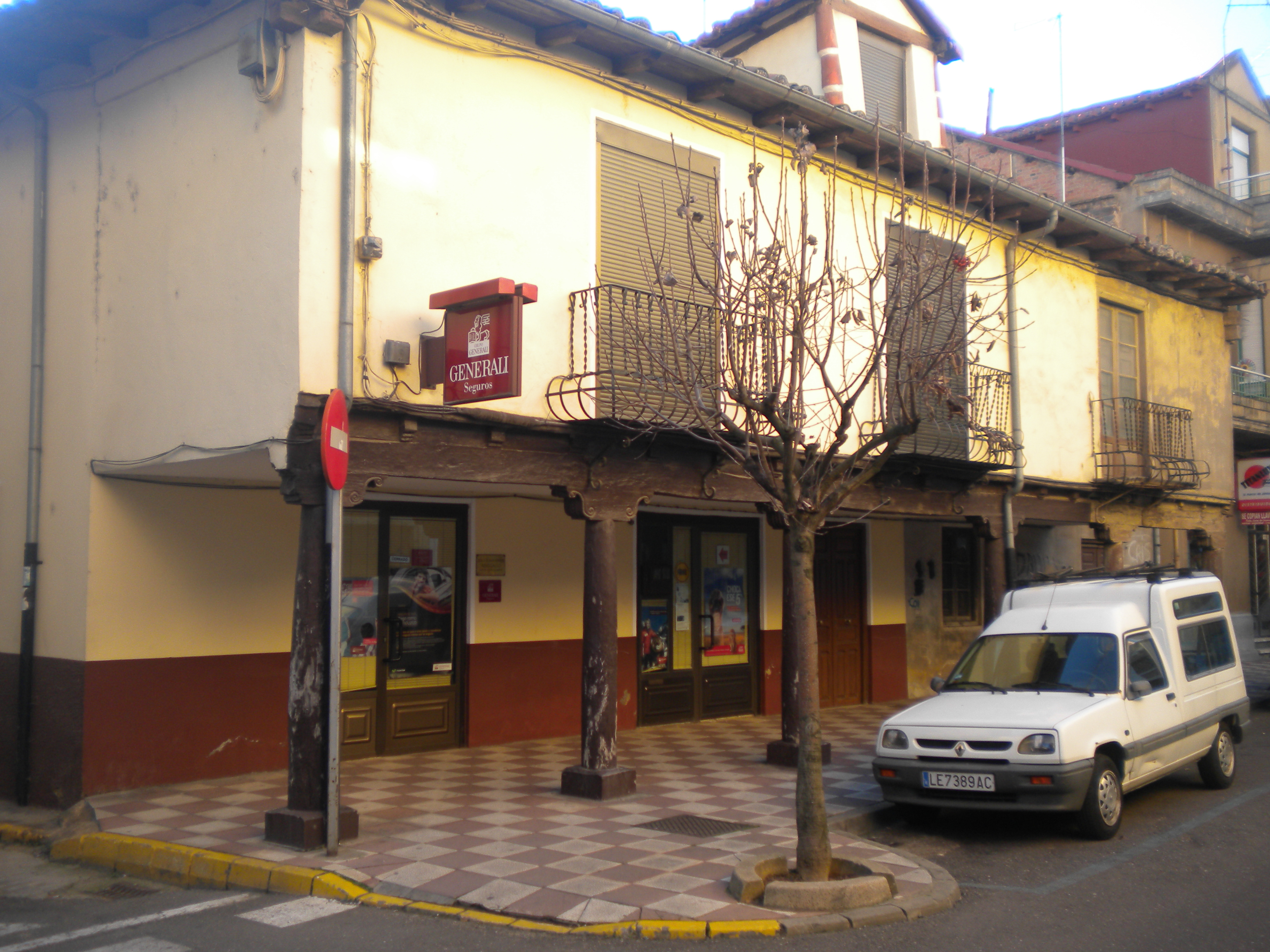 Casas bajas construidas en tapial y adobe y con soportales, situadas en la calle Conrado Blanco de La Bañeza.