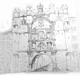 Plumilla en ByN del Arco de Santa María, de Burgos, para colorear