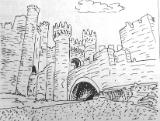 Plumilla en ByN del castillo de los Templarios, de Ponferrada (León), para colorear