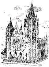 Plumilla en ByN de la Catedral de León, para colorear en artística y conocer nuestro patrimonio