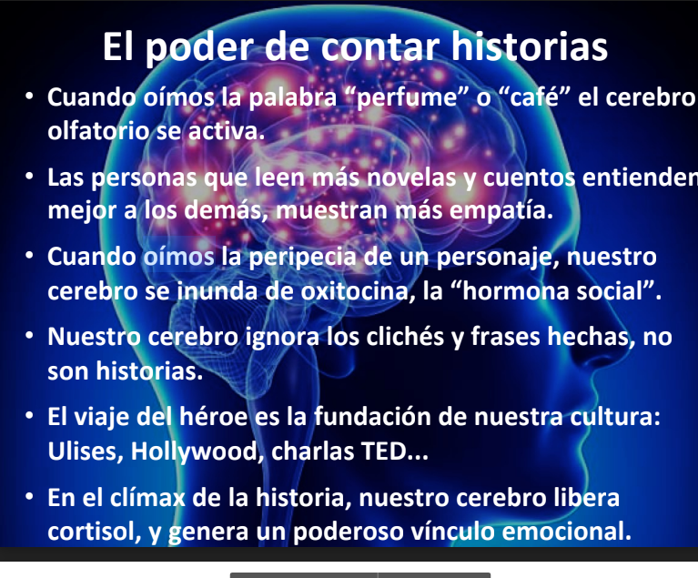 Presentación que resume los beneficios para el desarrollo cerebral el hecho de contar historias