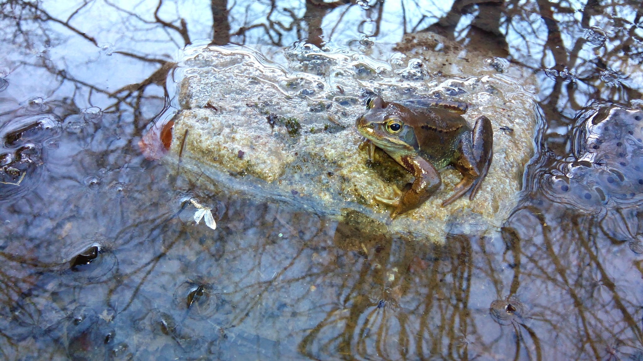 Huevos depositados en el agua tras ser fecundados externamente, al ser animales ovíparos.