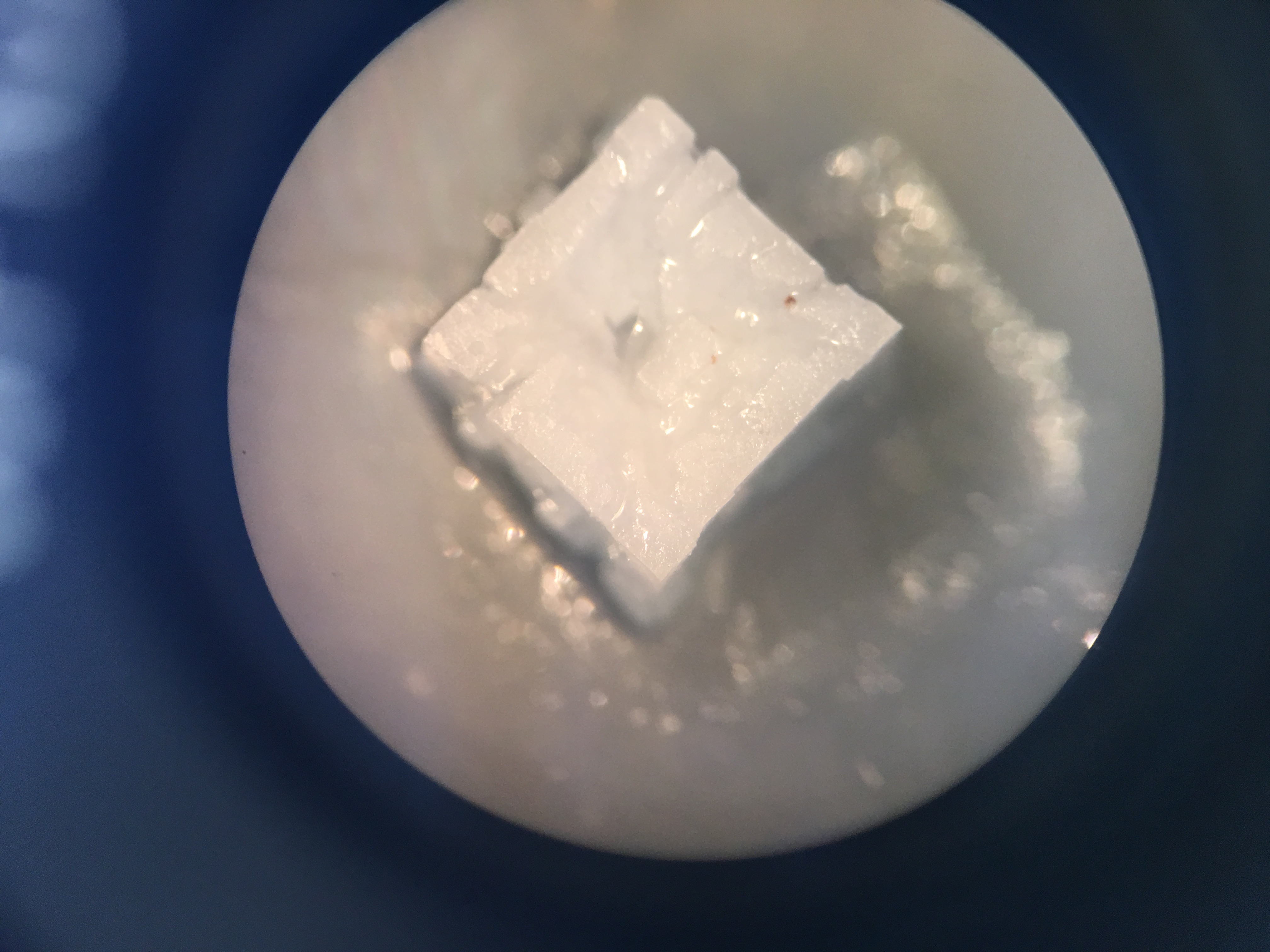 Realizamos una práctica en la cuál imitamos las condiciones de las cuevas para obtener cristales de sal común a partir de una disolución.Vista en lupa binocular.