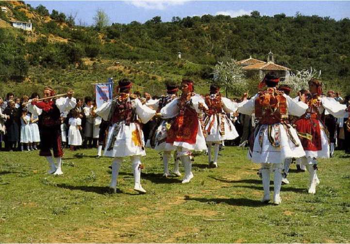 Romería en las fiestas del patrón de San Jorge en la localidad de San Esteban de Nogales, con acompañamiento de los danzantes.