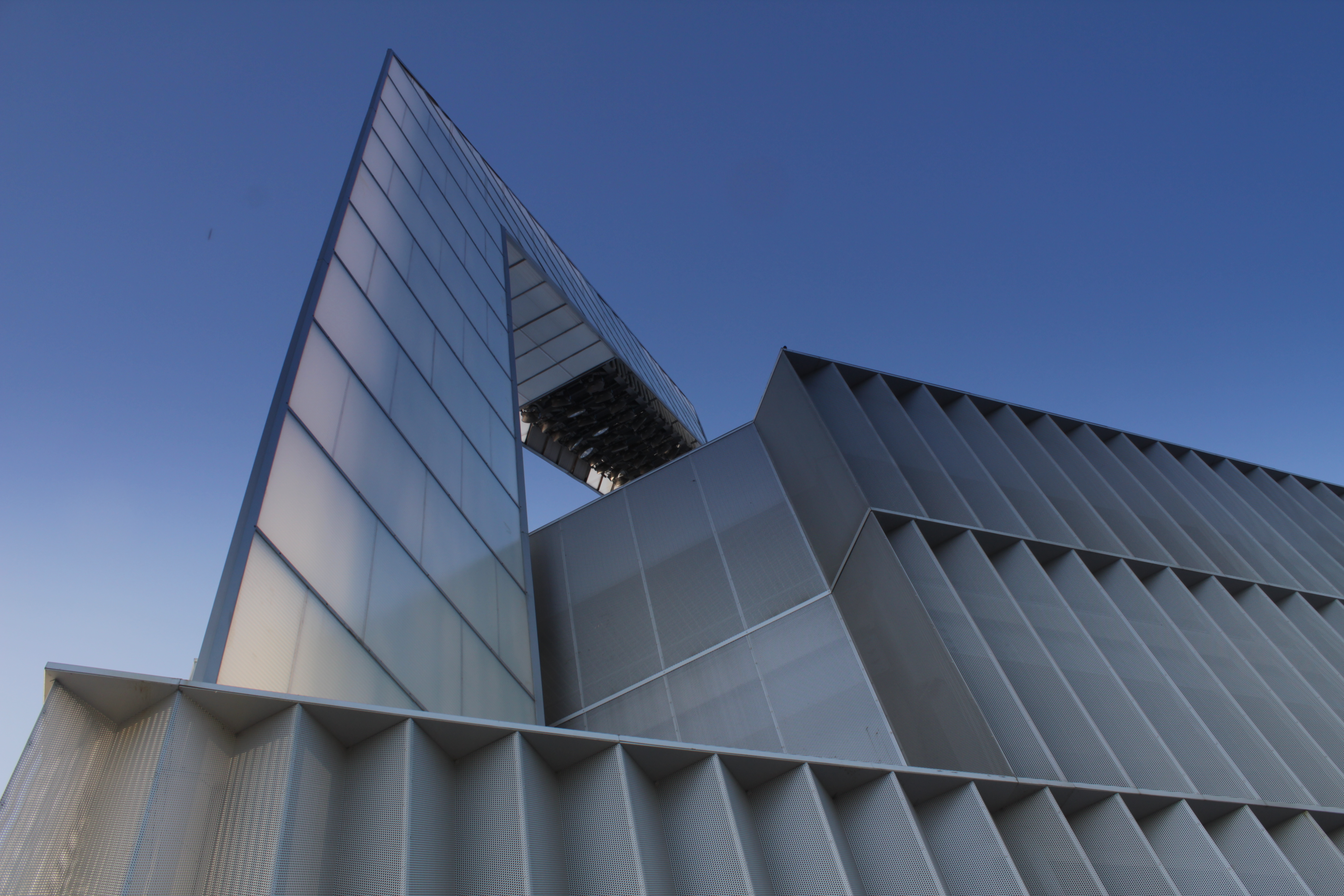 Detalle de una torre del nuevo estadio La Balastera en Palencia.