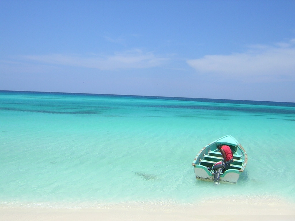 Fusión de colores entre el pescador y el mar Caribe en República Dominicana.