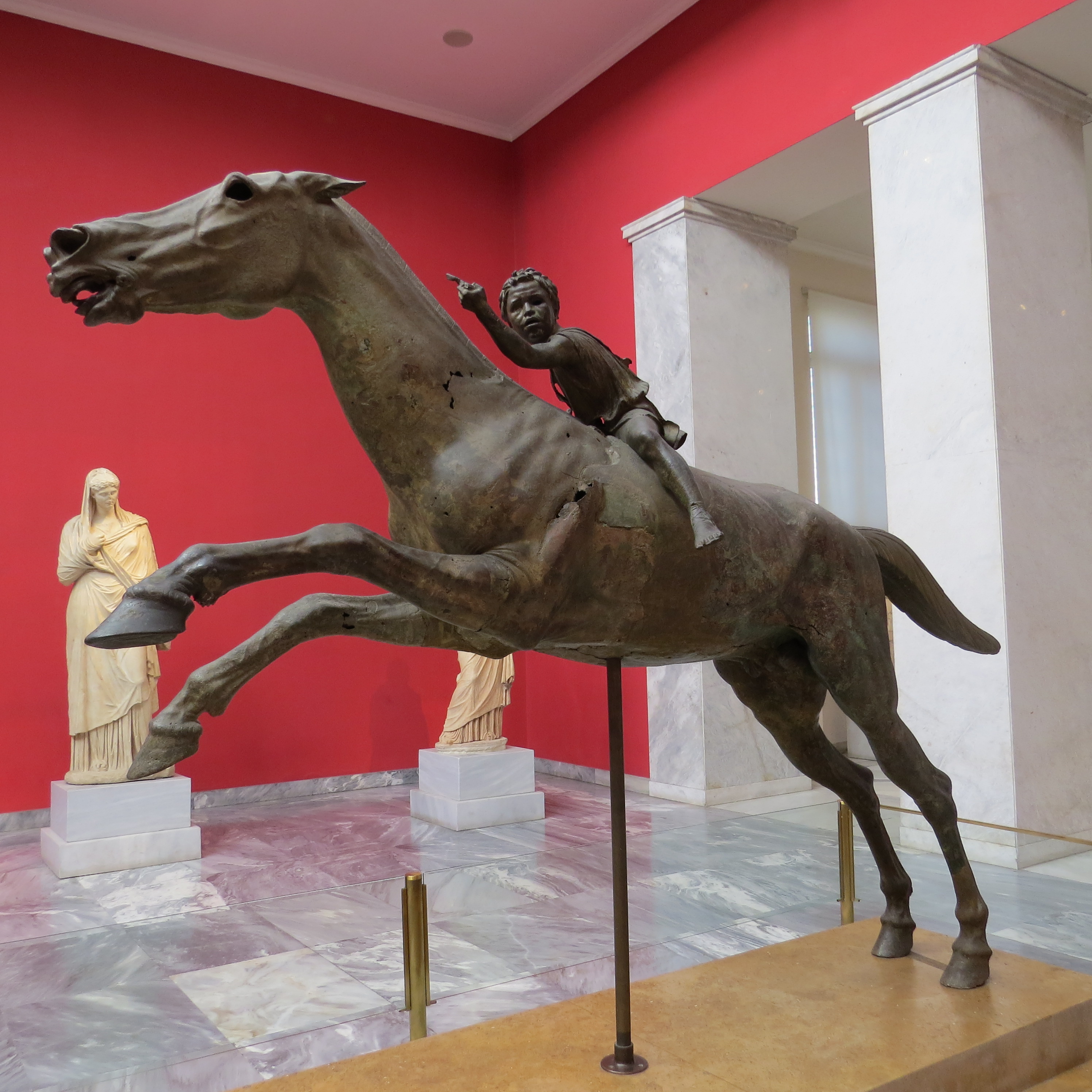 Escultura en bronce que representa a un niño montado a caballo en posición de galope y se encuentra en el Museo arqueológico Nacional de Atenas. La escultura pertenece al estilo helenístico y el conjunto representa un logrado sentido del movimiento. No solo el caballo, que se apoya en sus patas traseras sobre las que se impulsa para salir impetuosamente, sino también el niño acompaña el movimiento, en posición adelantada y el brazo elevado, posiblemente sujetando las riendas.