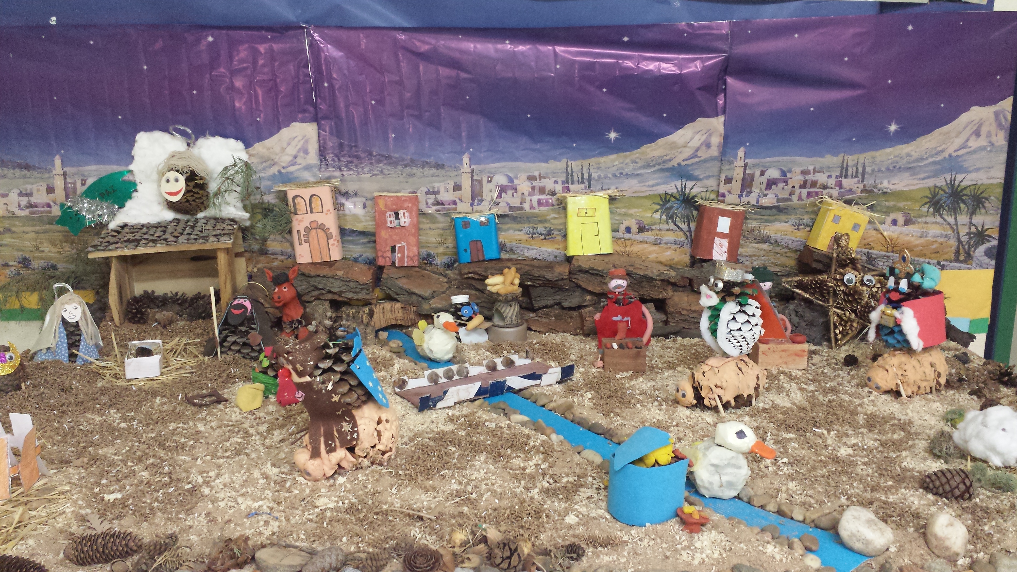 Manualidad: Belén realizado con piñas