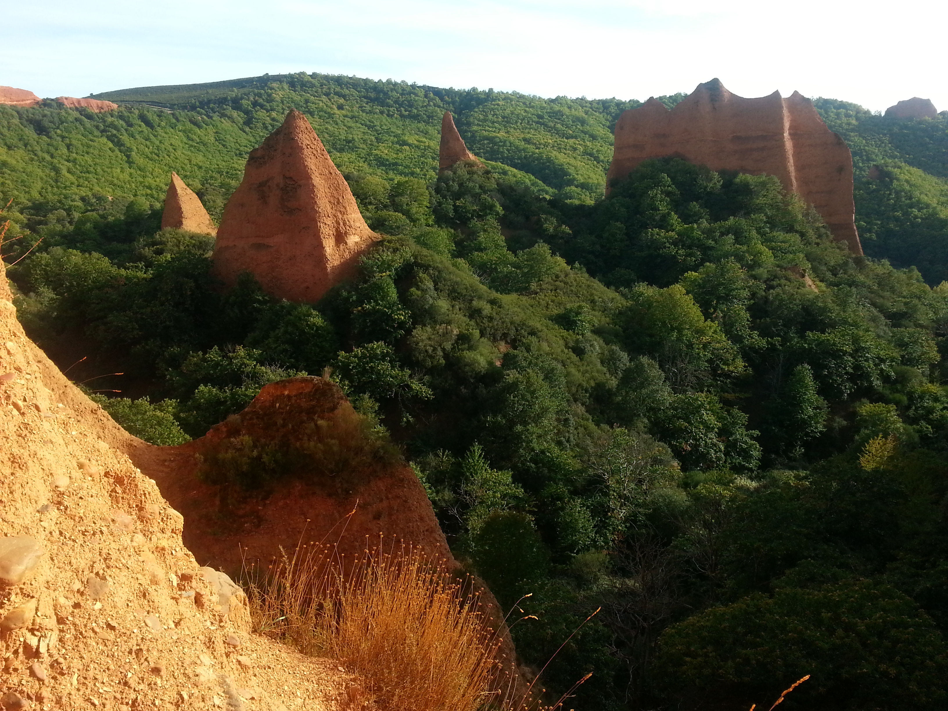 Las Médulas son una antigua explotación minera de oro en la comarca del Bierzo, a unos 20 kms de Ponferrada.El sistema de extracción utilizado (ruina montium) provocó profundos cambios en el paisaje de la zona.Este sisteta consistía en derruir los montes a través de canales subterráneos por los que se soltaban fuertes trombas de agua que arrastraban gran cantidad de material que se lavaba en los estanques y se decantaba en las agogae para recoger el oro