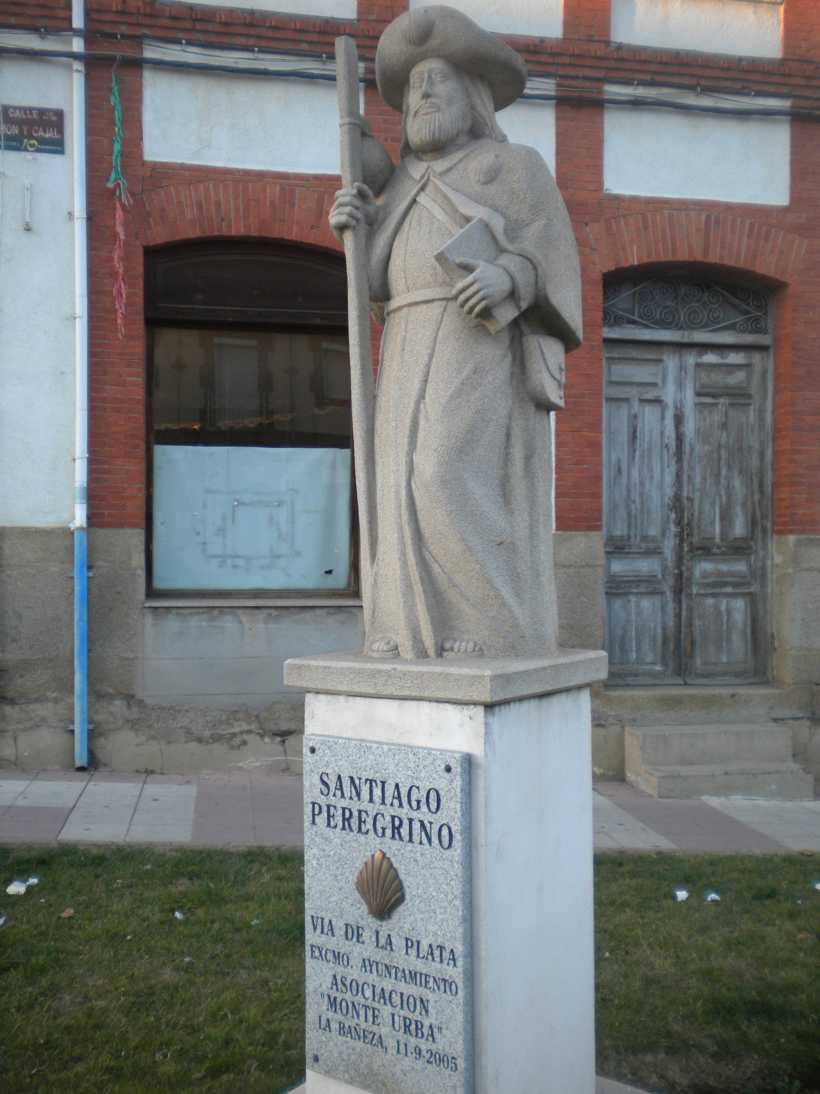 La Bañeza es hito fundamental en la ruta de peregrinación a Santiago a través de la Ruta de la Plata. La ciudad cuenta con albergue de peregrinos y una asociación de amigos del Camino de Santiago, denominada Monte Urba, que es la encargada de erigir este monumento a Santiago peregrino. La obra es de 2005.