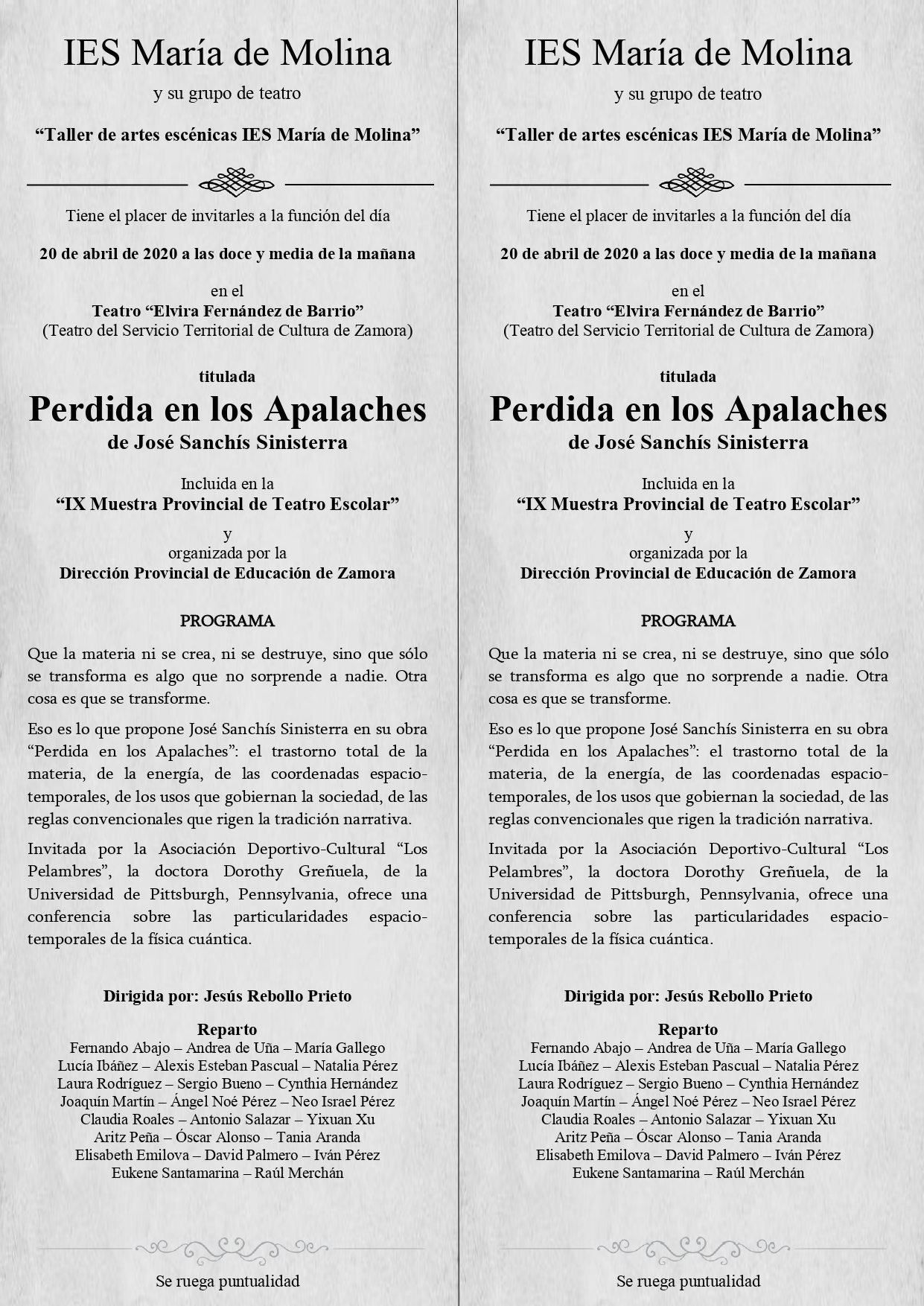 Documento de la muestra de Teatro del IES María de Molina, dentro de las VII Jornadas Provinciales de Fomento de la Lectura