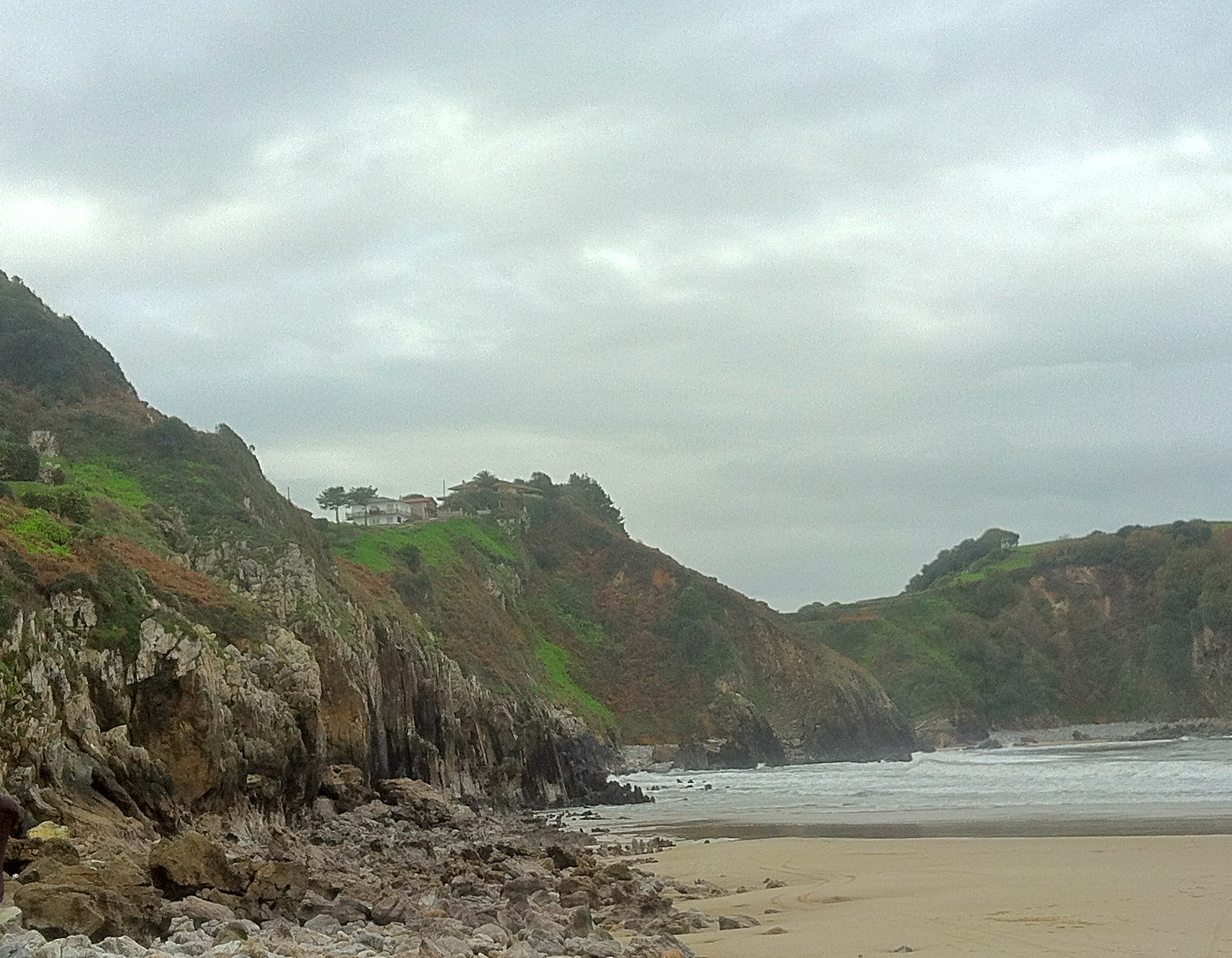 Playa asturiana con un acantilado al fondo.