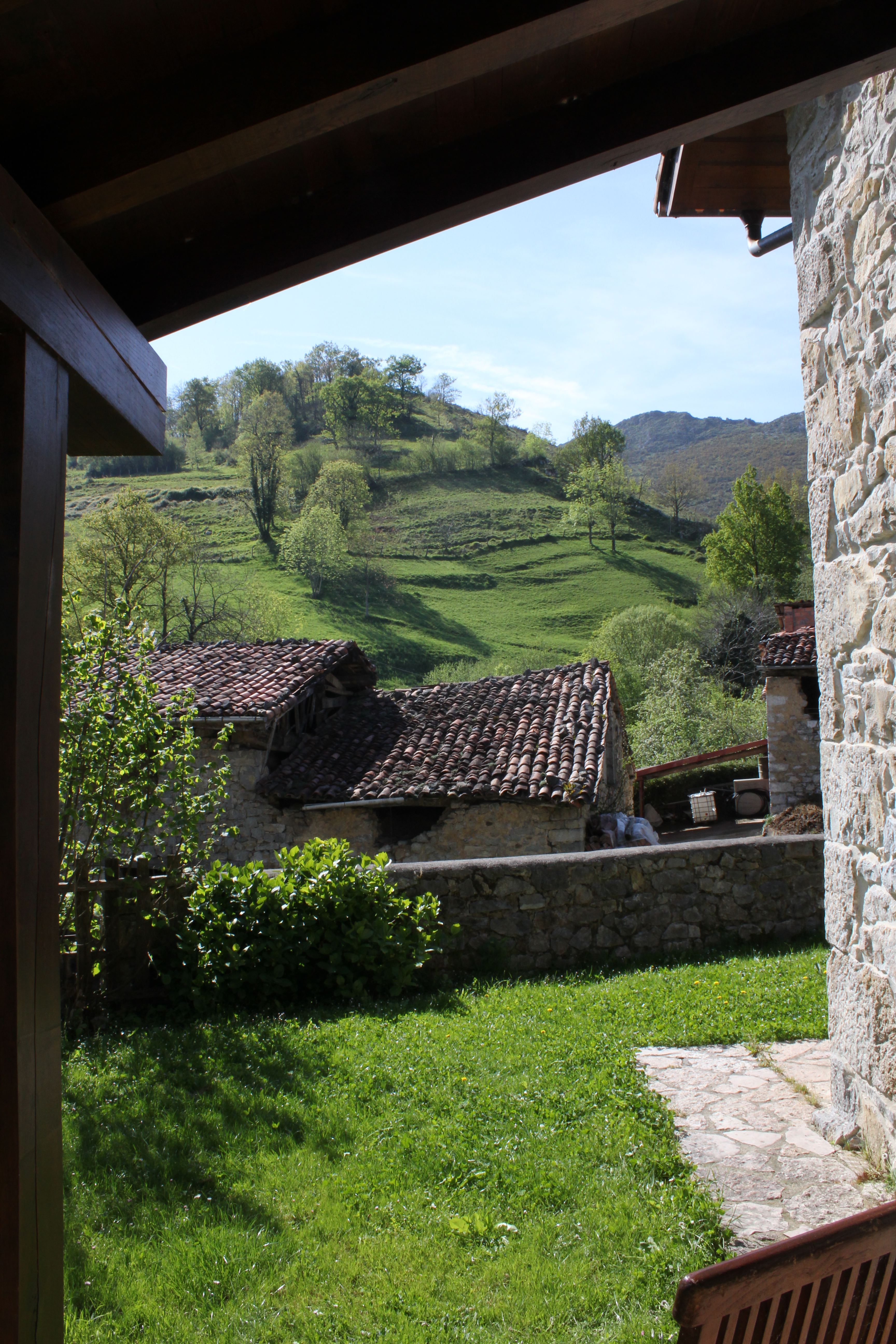 Vista exterior de prados asturianos desde una casa rural.