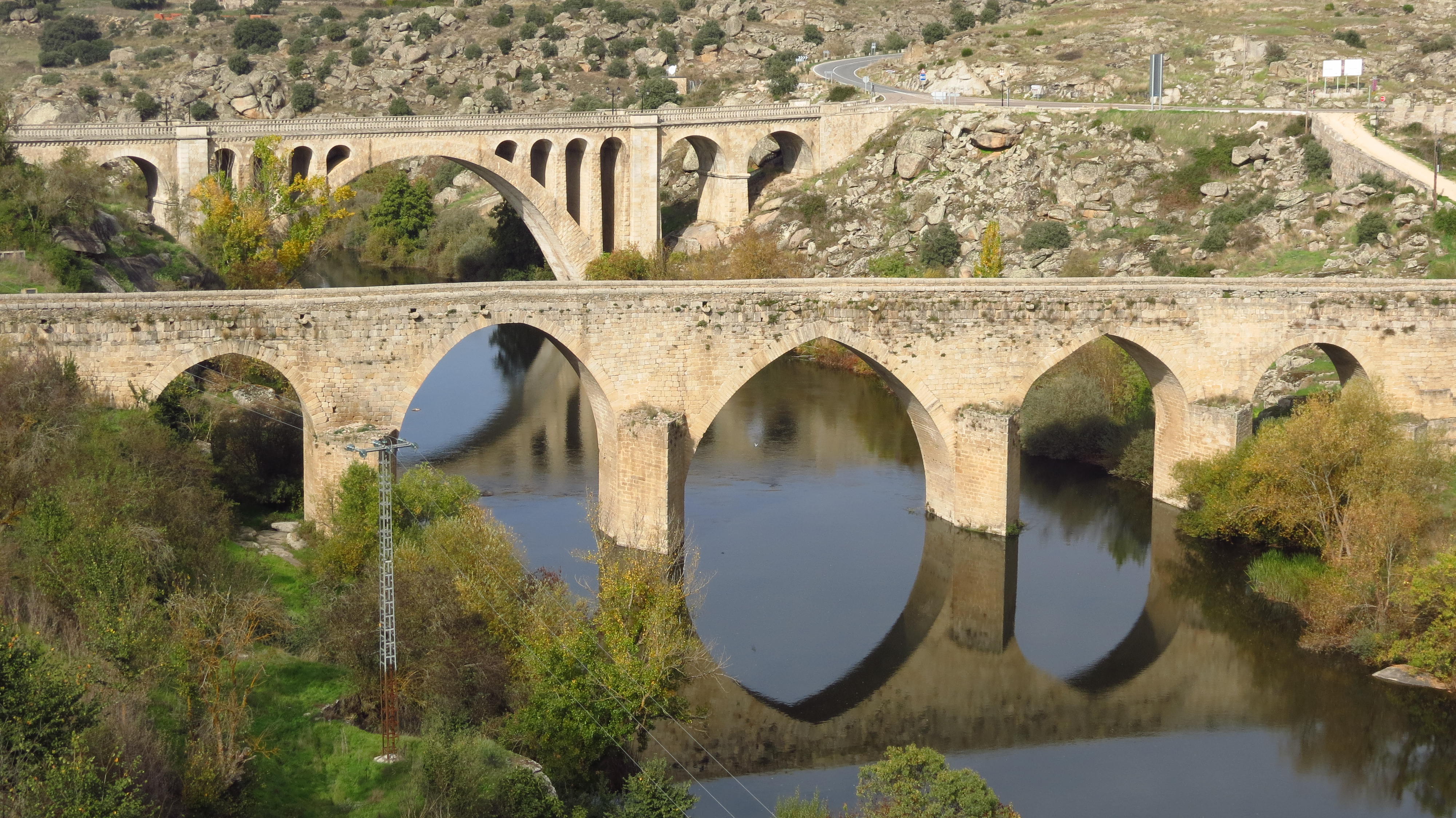 Fotografía de los dos puentes de Ledesma sobre el rio Tormes.