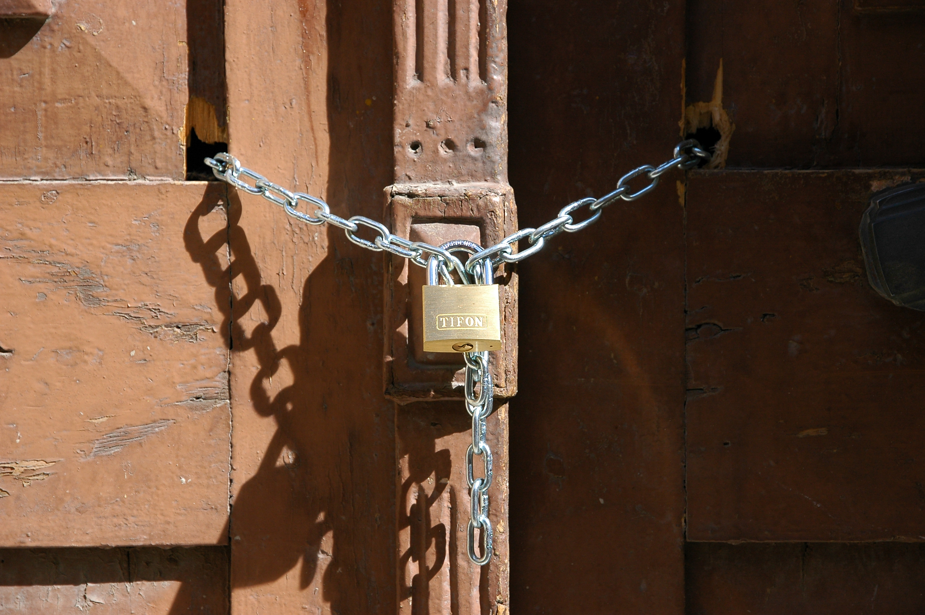 Puerta cerrada con candado y cadena