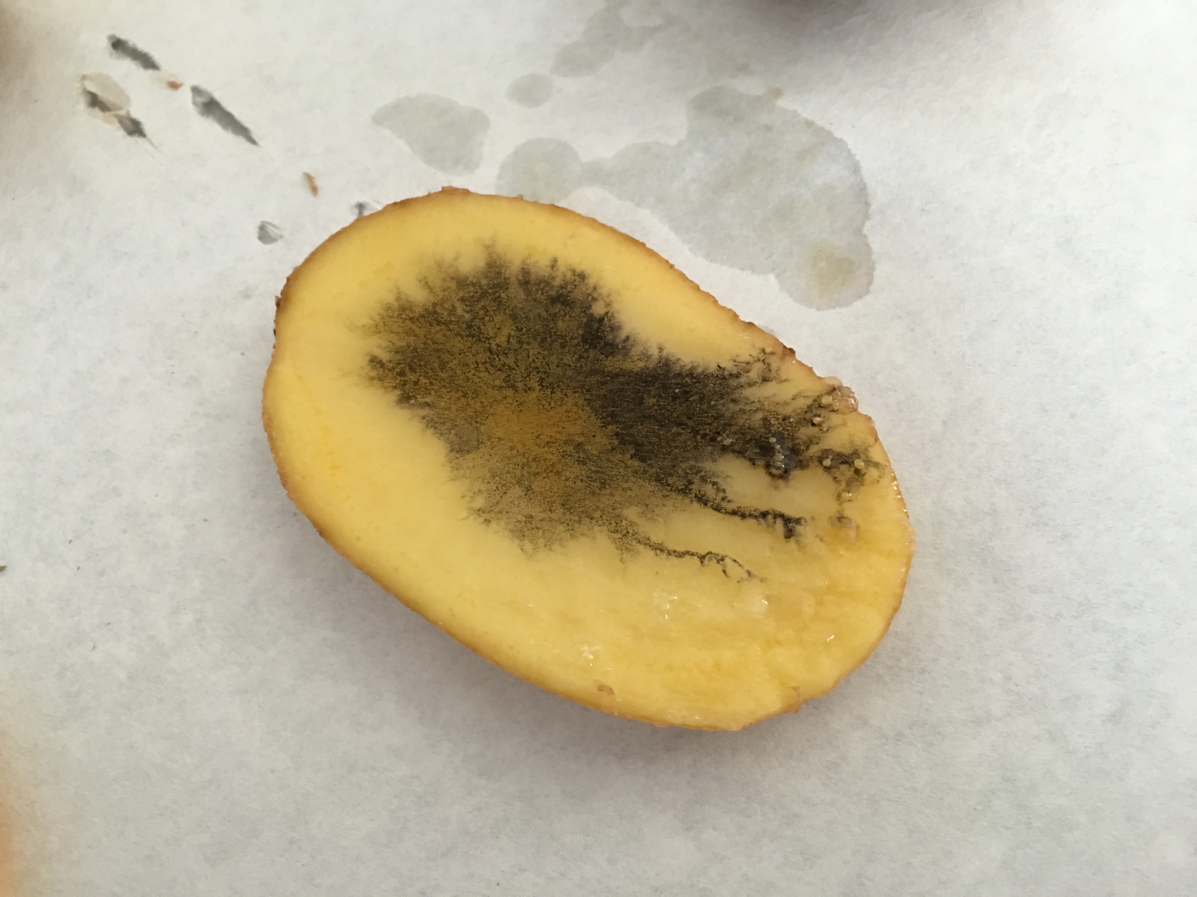 Imagen en la que se observa el resultado de la reacción entre el almidón de las patatas y el azul de metileno.