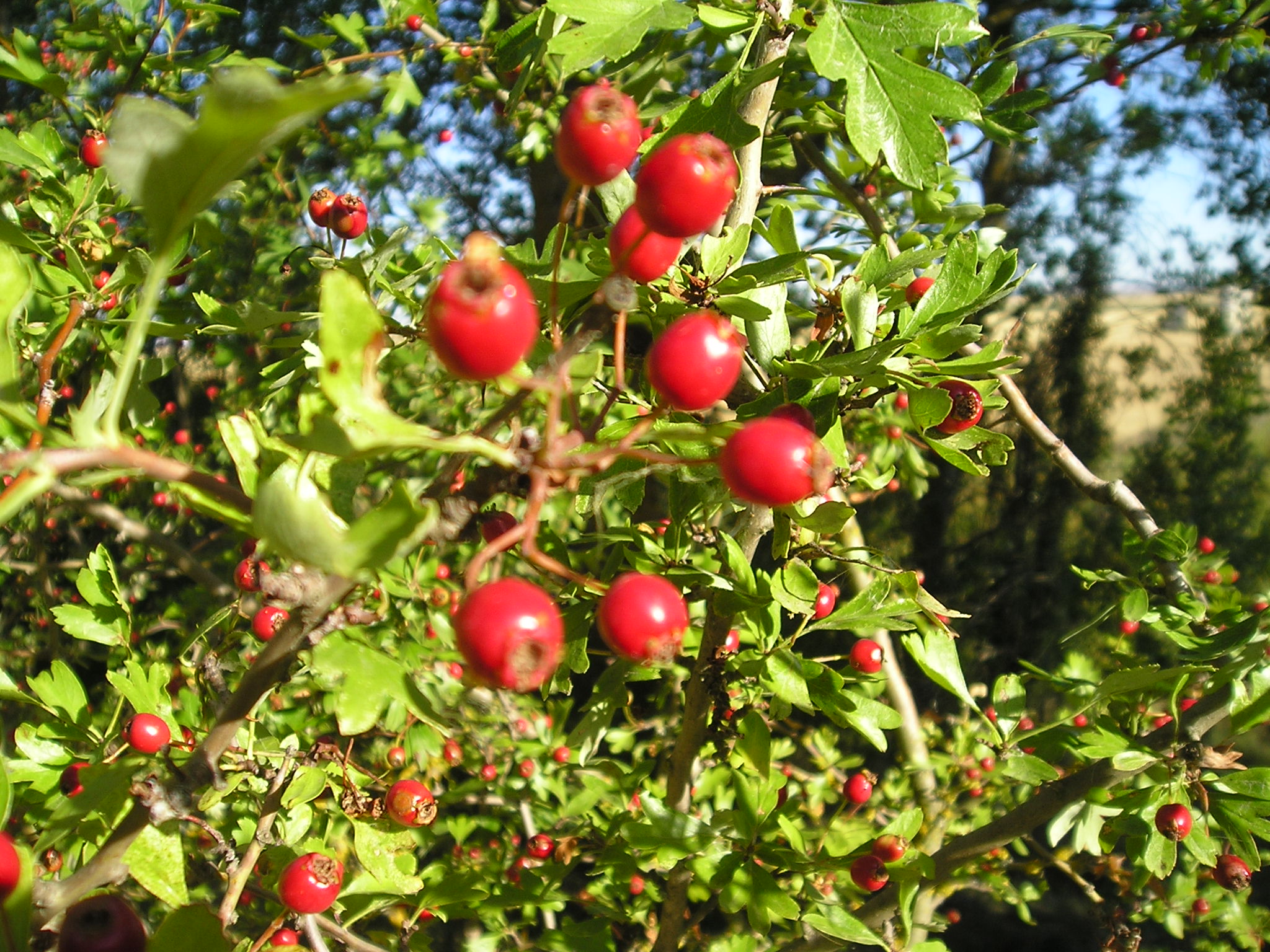 Fotografía de un acerolo con sus frutas, las acerolas, maduras.