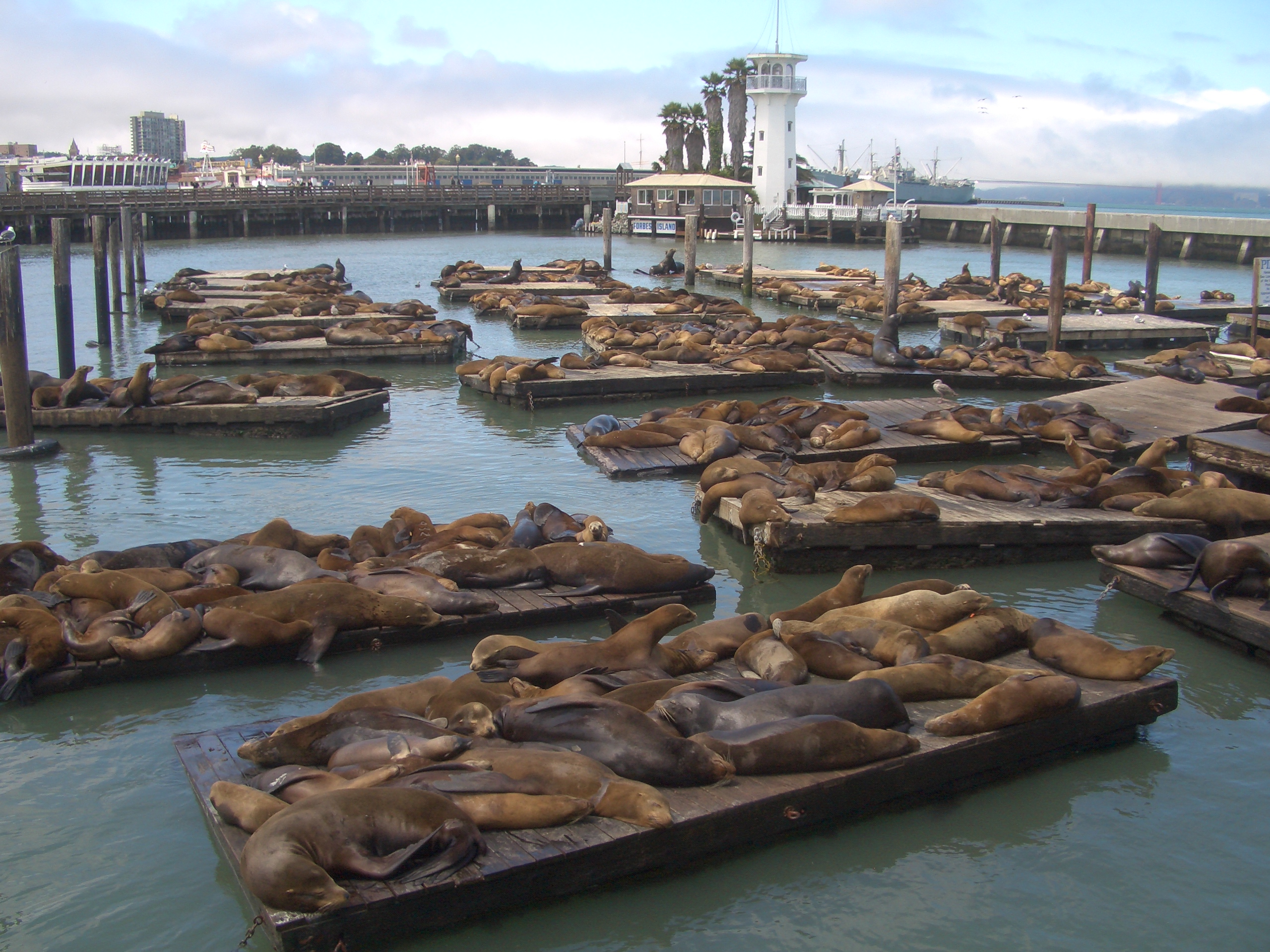 La imagen muestra una colonia de leones marinos que vive de una forma estable en el muelle de San Francisco (EEUU)