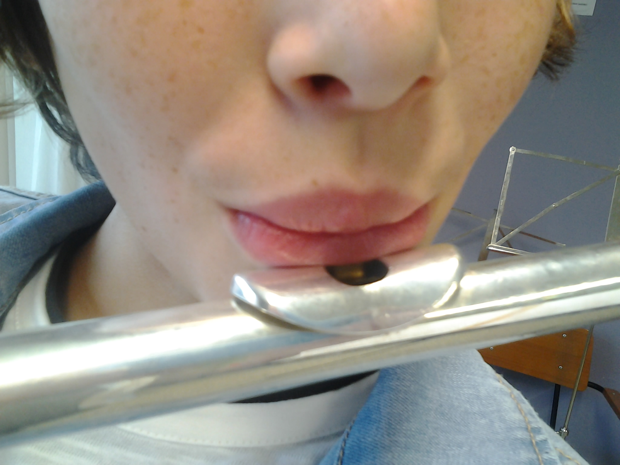 Fotografía de la embocadura de la flauta travesera y colocación de los labios.