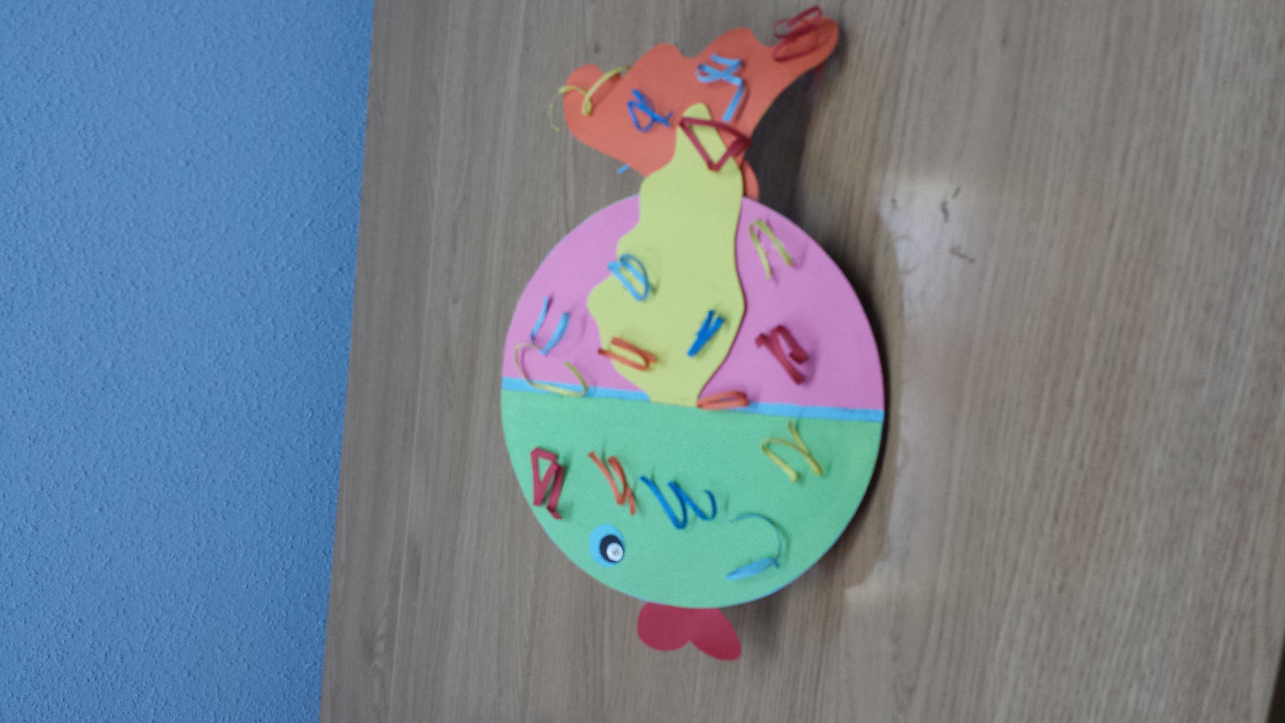 Muestra cómo con cartulina, pegamento y unas tijeras se puede realizar una manualidad. en este caso un pez.
