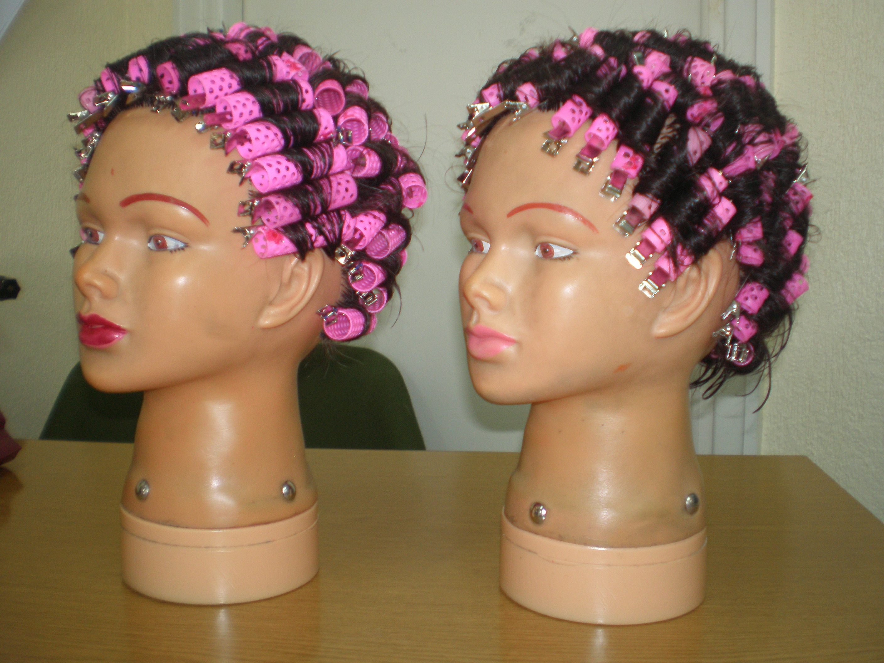 Fotografía de dos maniquíes con rulos.