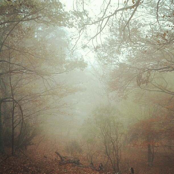 Fotografía de niebla en un robledal en otoño