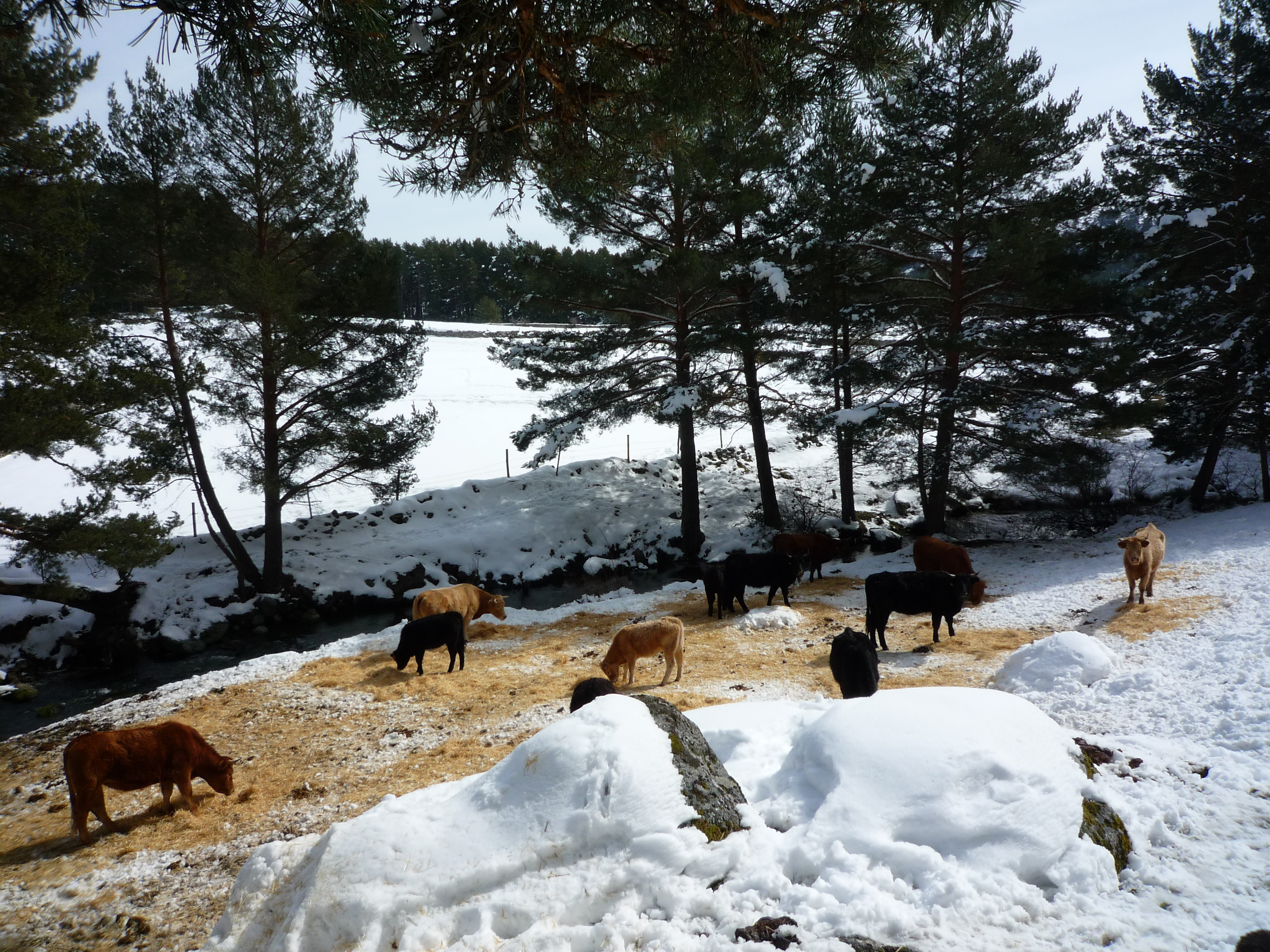 Fotografía de prados con vacas avileñas, mestizas a las orillas del río Tormes a su paso por Hoyos del Espino. Sierra de Gredos.