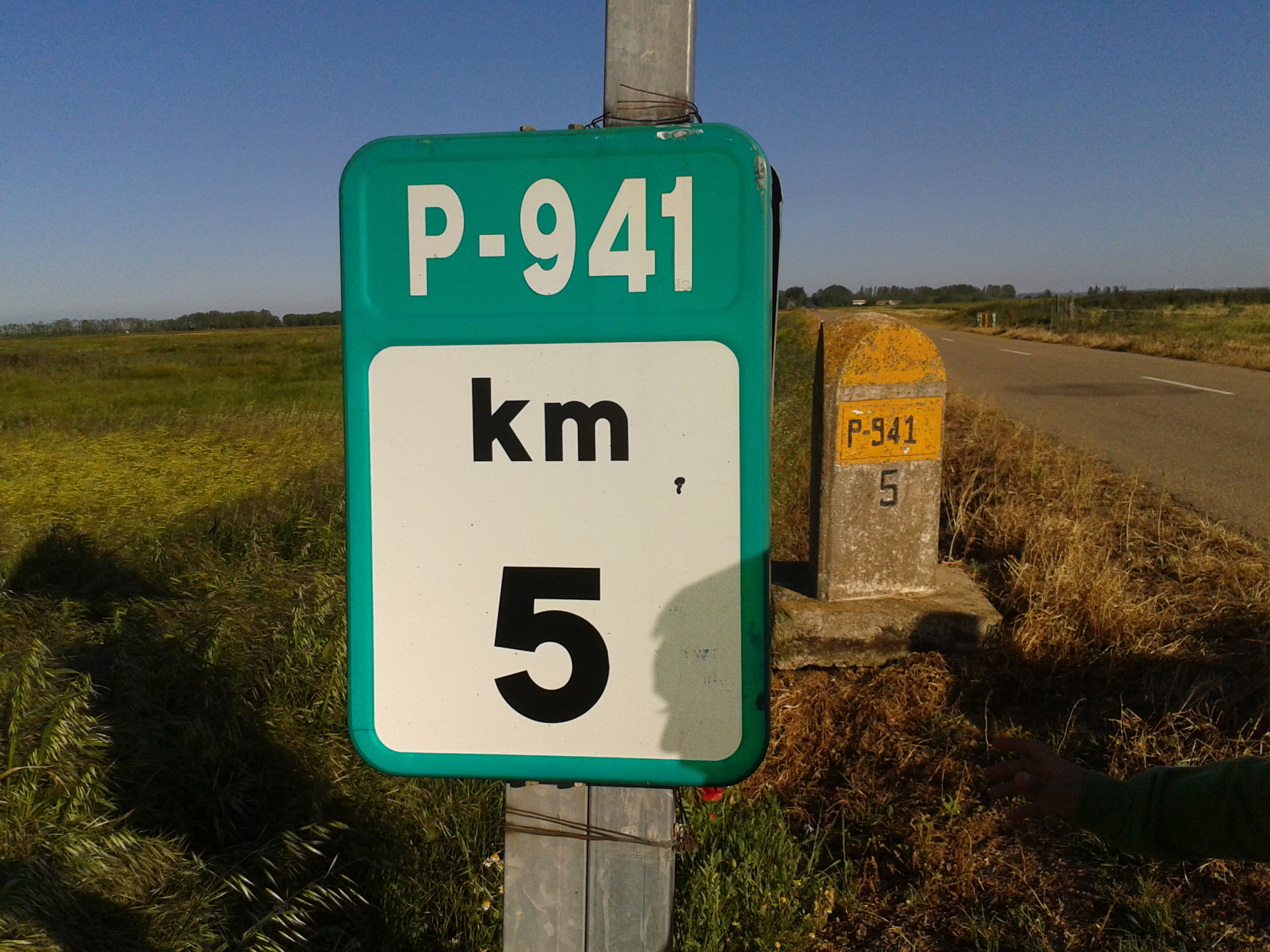 Señal de tráfico que indica el nombre de la carretera y el punto kilométrico de la misma.