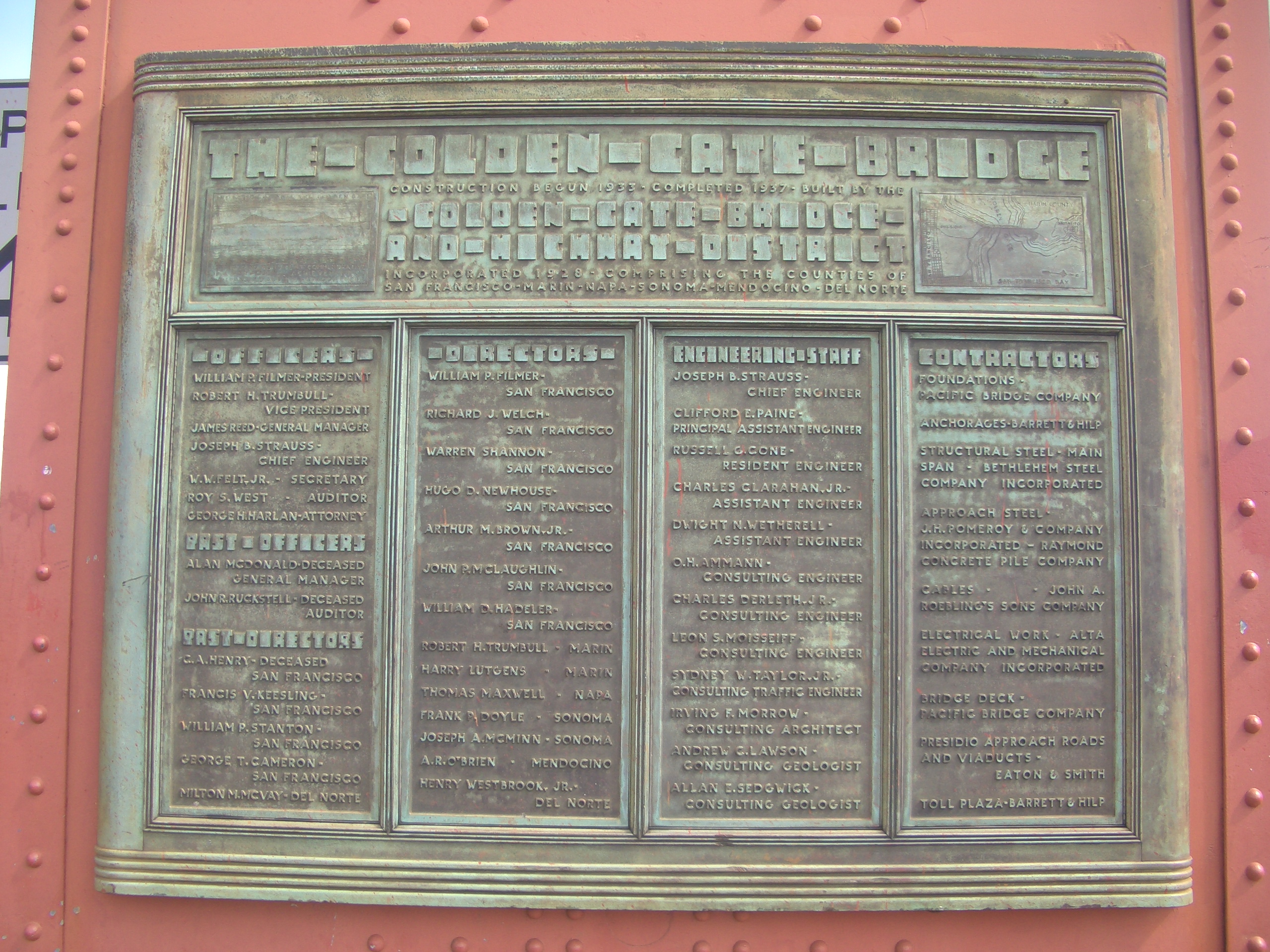 La imagen muestra la placa inserta en The Golden Gate Bridge (San Francisco - EEUU) donde se rinde reconocimiento a los técnicos que hicieron posible esta obra de ingeniería mundial. Puede ser utilizada para ver vocabulario técnico en inglés.