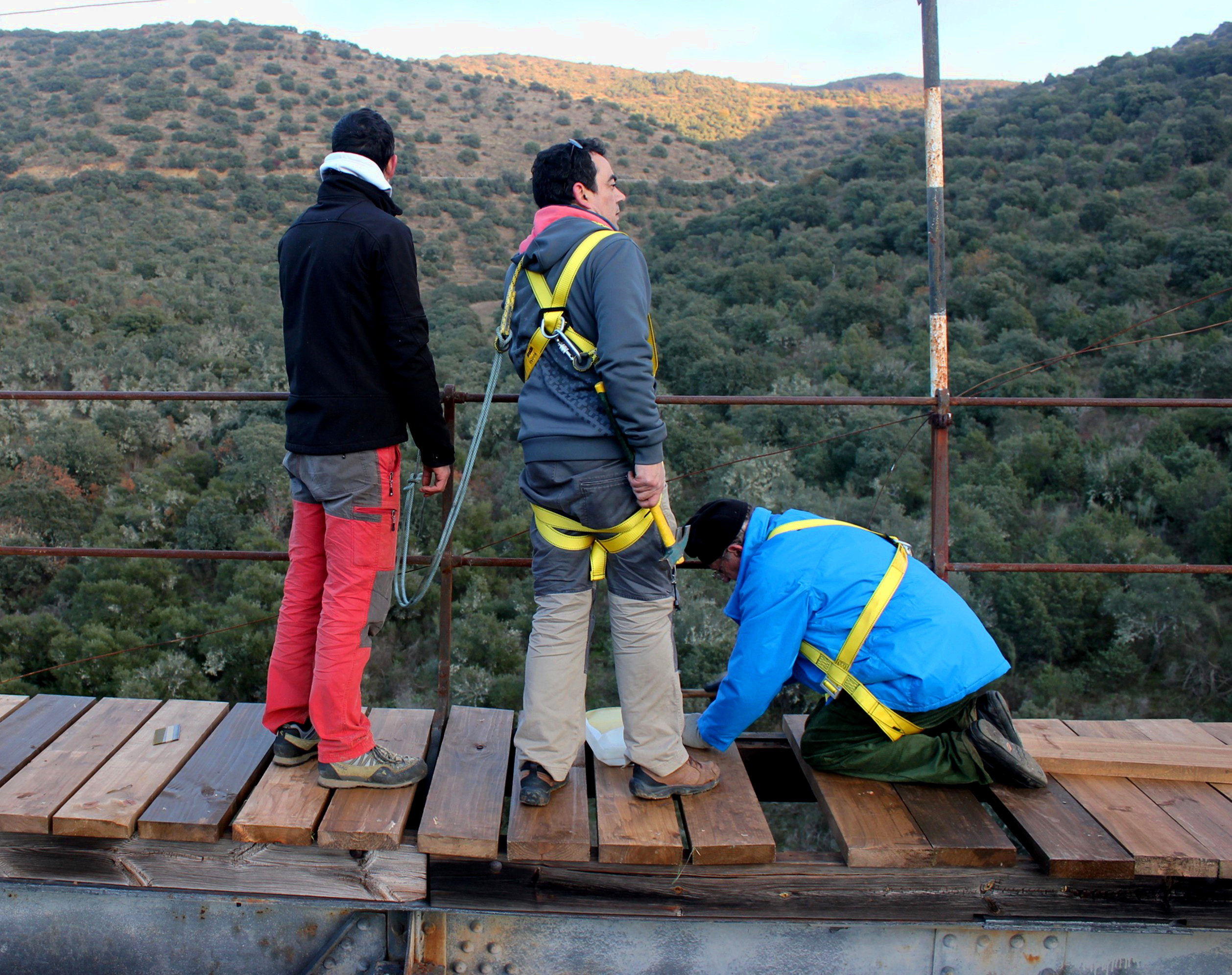 Fotografía Voluntarios con arneses en el puente de Las Almas .