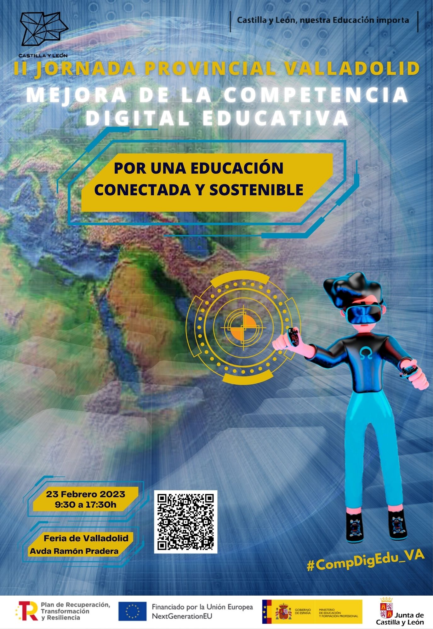 La II Jornada Provincial #CompDigEdu, celebrada el día 23 de febrero del 2023, con el lema "por una educación conectada y sostenible", tiene como objetivo informar sobre las novedades y desarrollo del Programa para la Mejora de la Competencia Digital Educativa, además de servir de inspiración y fomentar el intercambio de experiencias y conocimientos en torno a la competencia digital educativa.