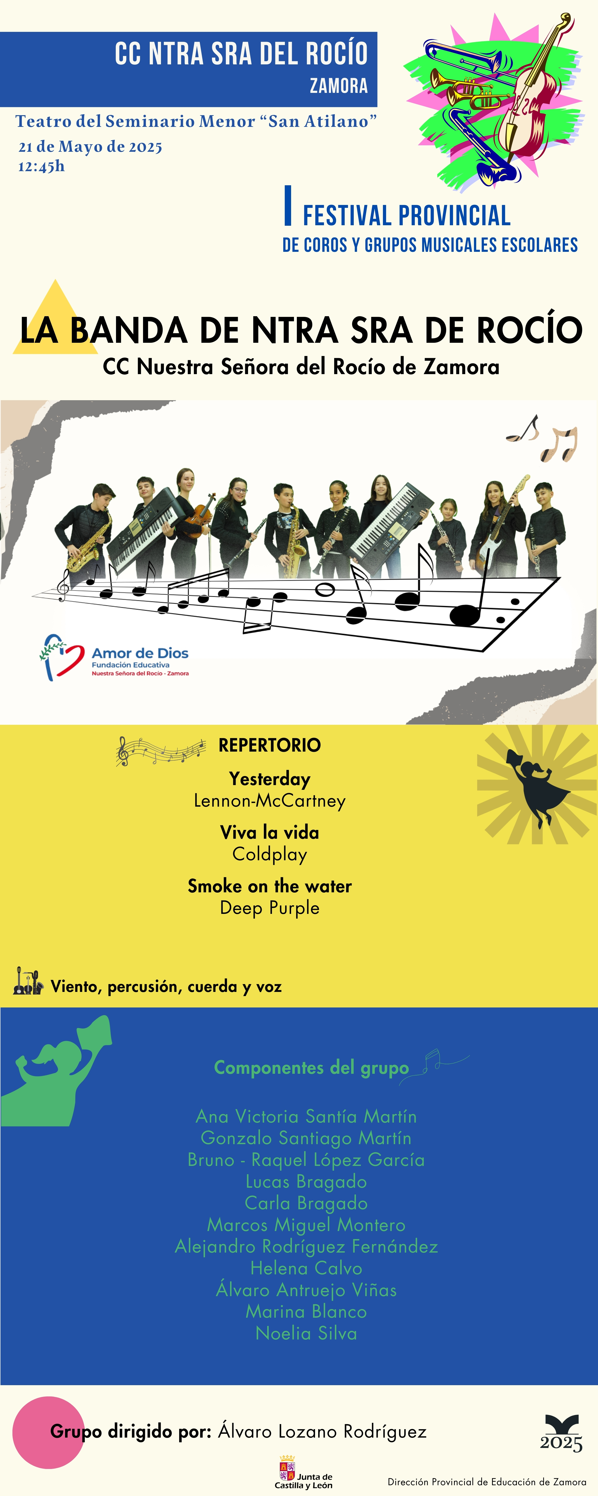 Celebramos este año el I Festival Provincial de Coros y Grupos Musicales Escolares, en el que contaremos con la participación de ocho centros educativos de la provincia de Zamora. Las actuaciones de los coros y grupos se realizarán los días 20 y 21 de mayo de 2025 en el Teatro del Seminario Menor San Atilano, en Zamora.