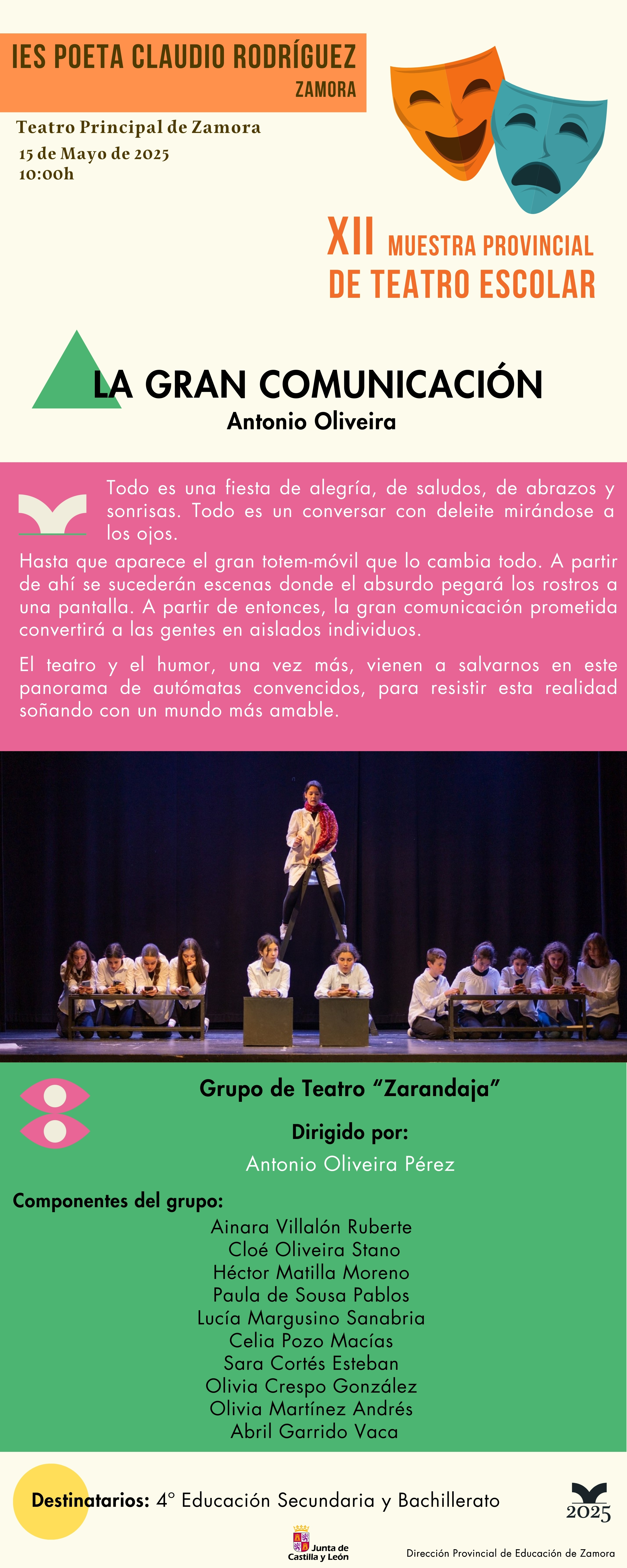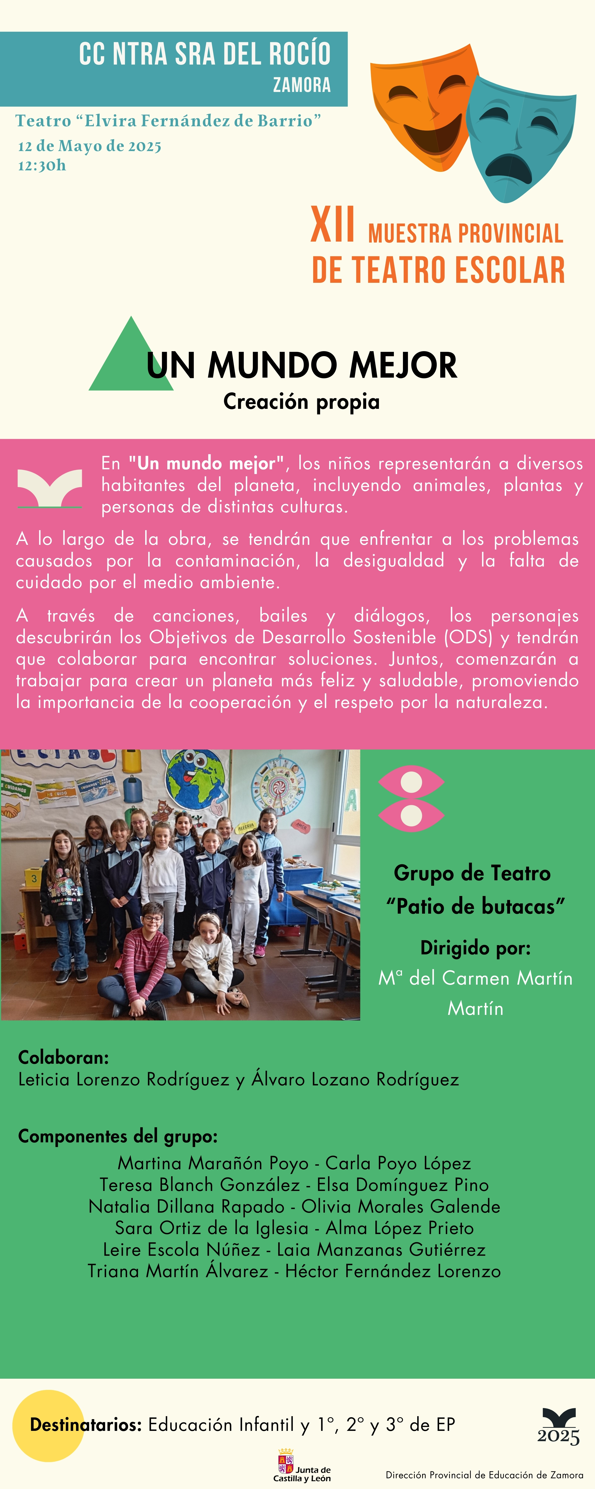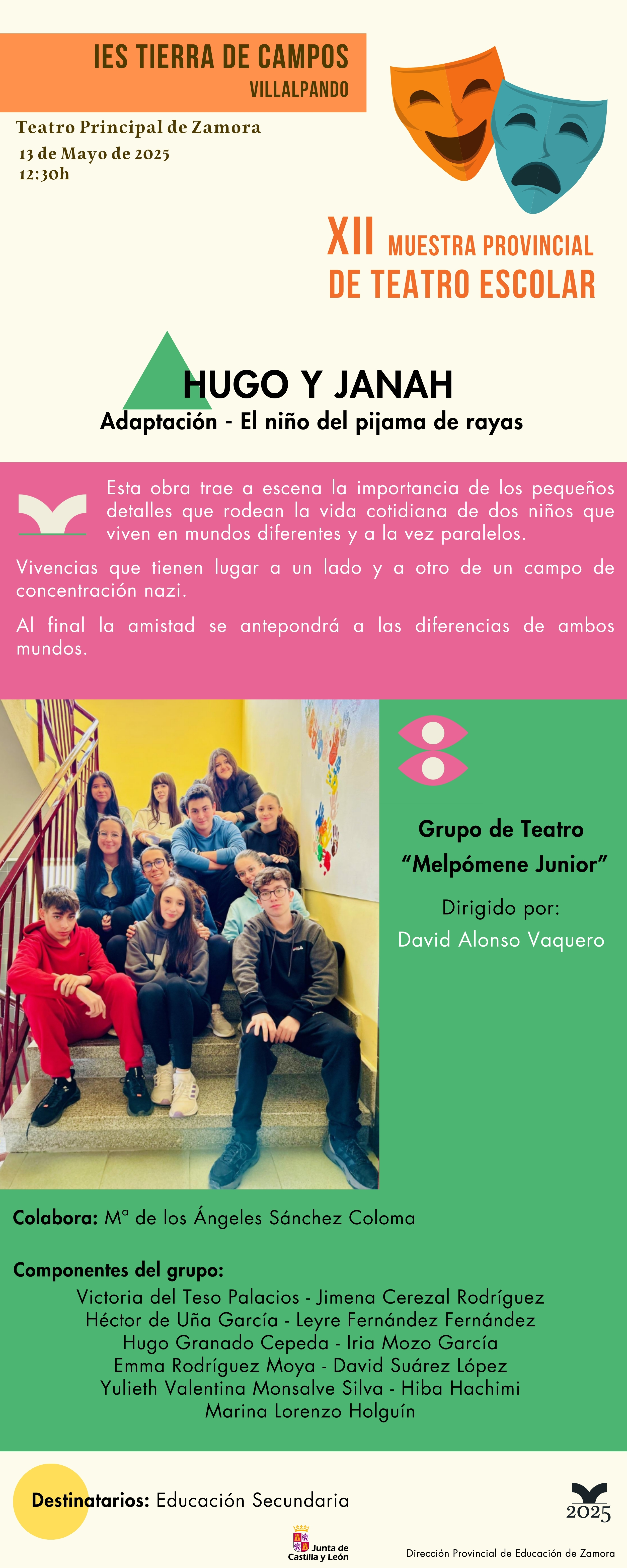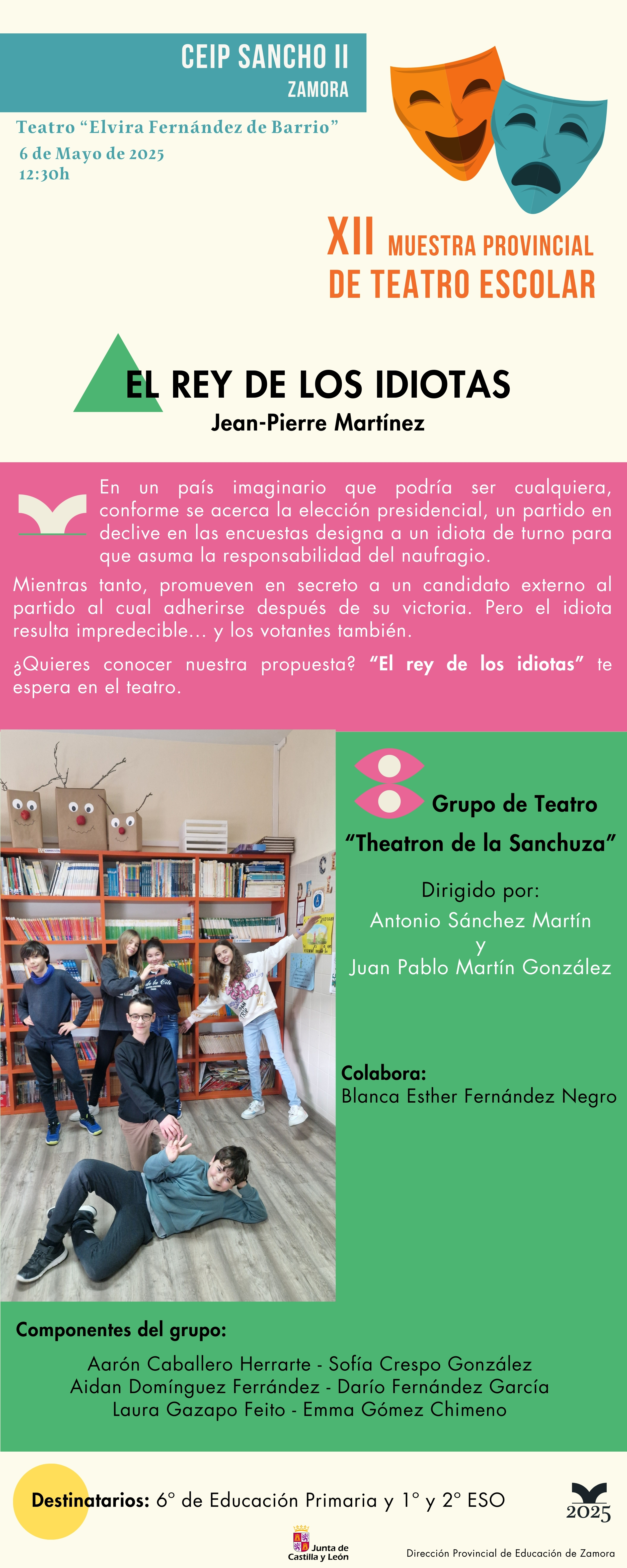 Fiel a la cita, como cada curso escolar -y enmarcada en el Plan de Lectura Provincial de la Dirección Provincial de Educación de Zamora-, llega a nosotros la XII Muestra Provincial de Teatro Escolar de los centros educativos de la provincia de Zamora.