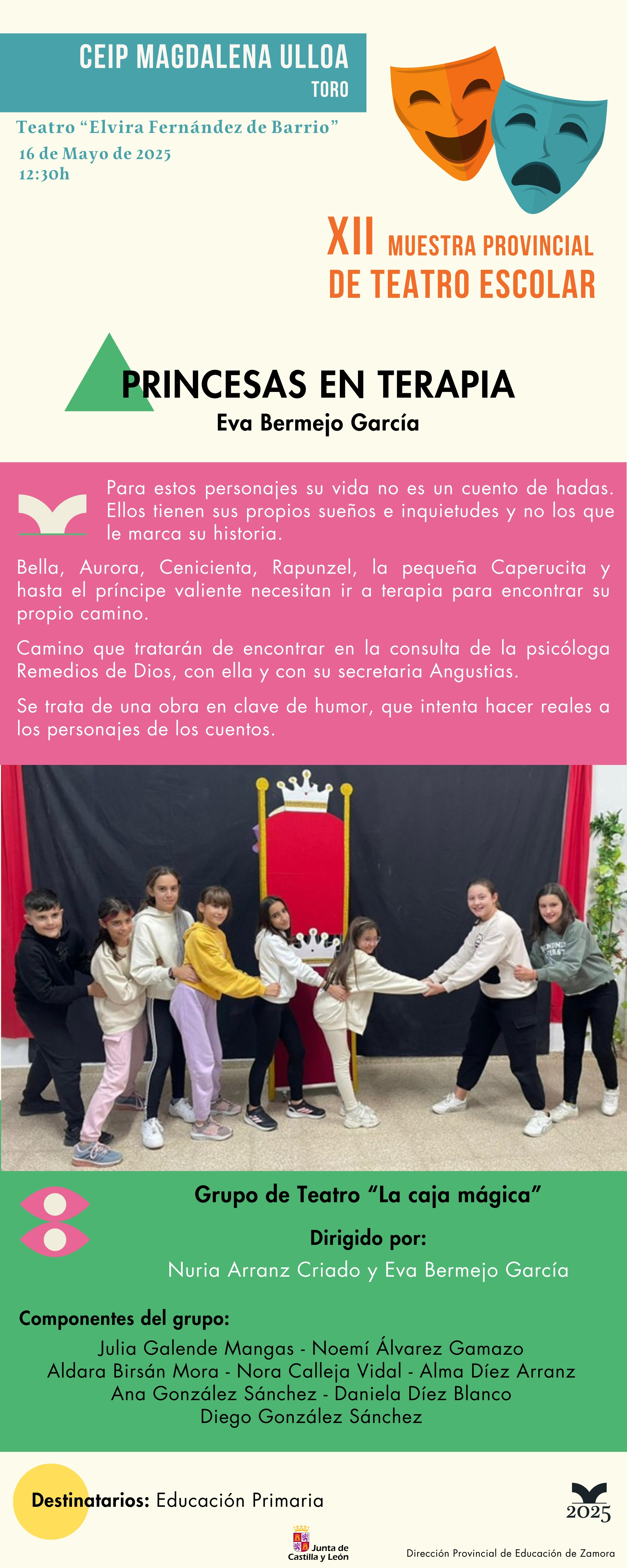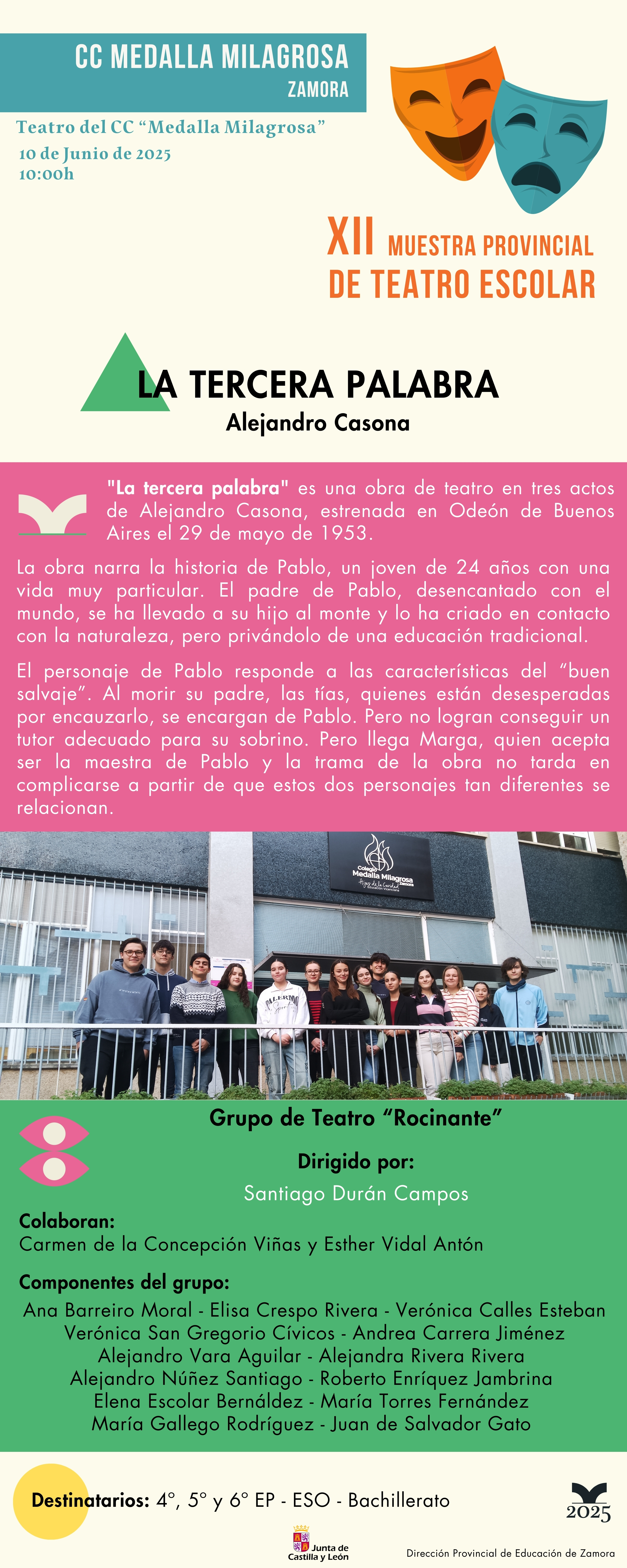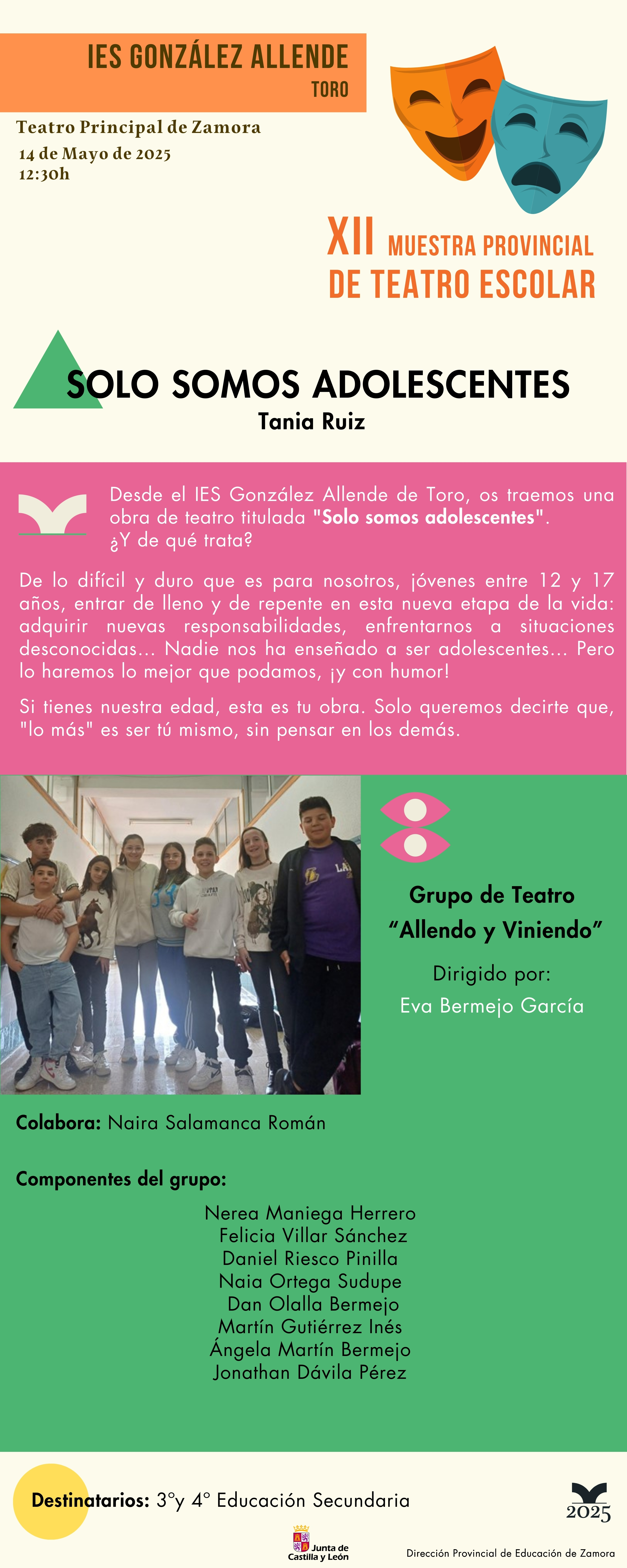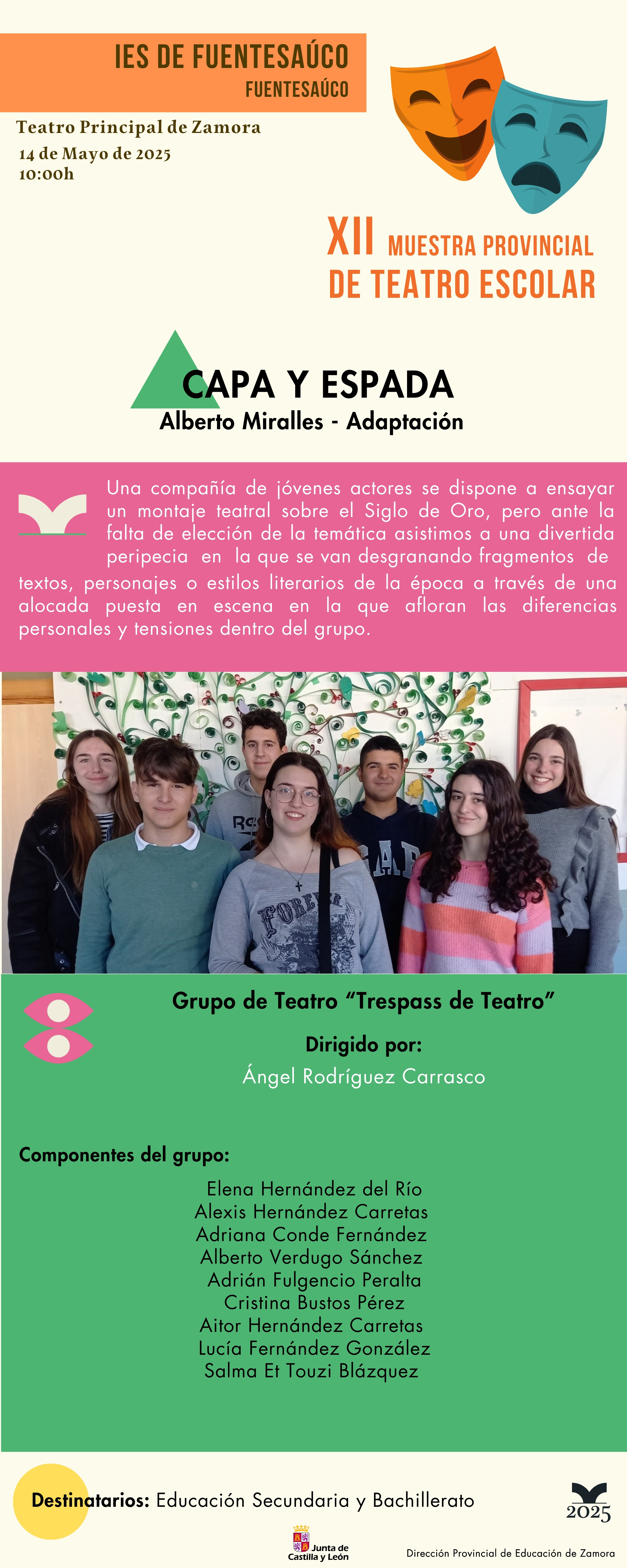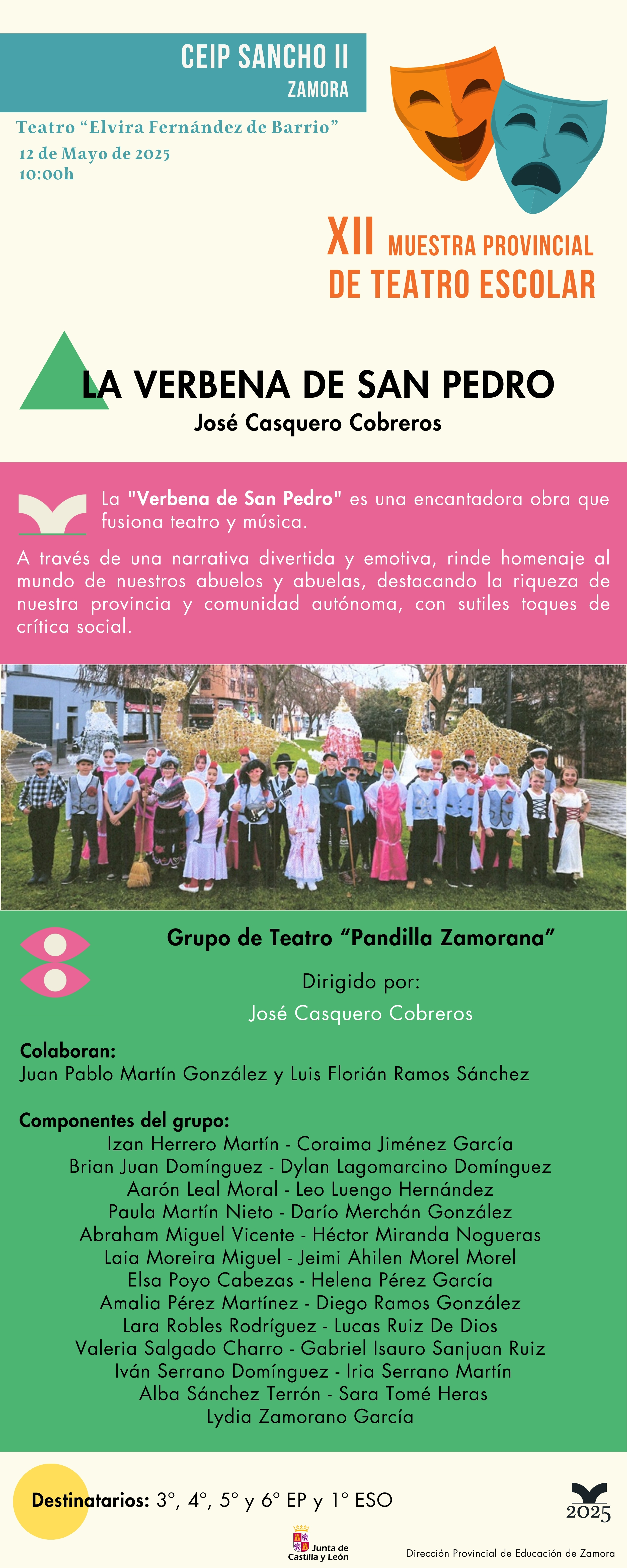 Fiel a la cita, como cada curso escolar -y enmarcada en el Plan de Lectura Provincial de la Dirección Provincial de Educación de Zamora-, llega a nosotros la XII Muestra Provincial de Teatro Escolar de los centros educativos de la provincia de Zamora.