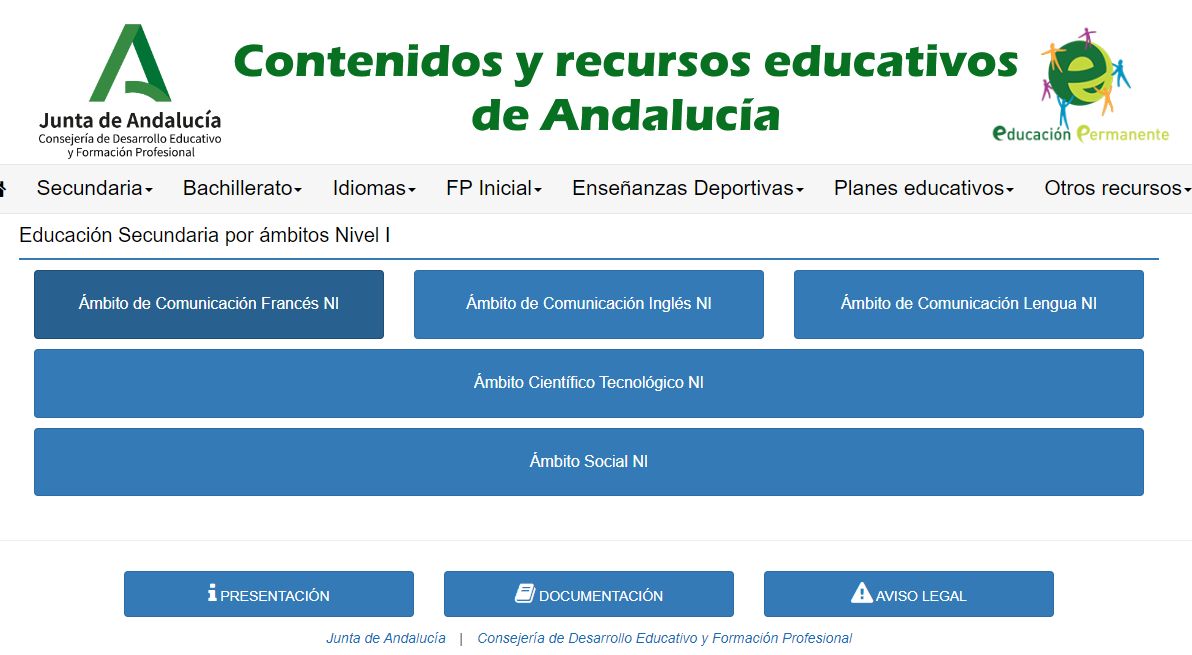 ♦ Proyecto CREA (Andalucía). Contiene materiales para Secundaria, FP, Idiomas y educación Permanente. no hay materiales para Primaria.