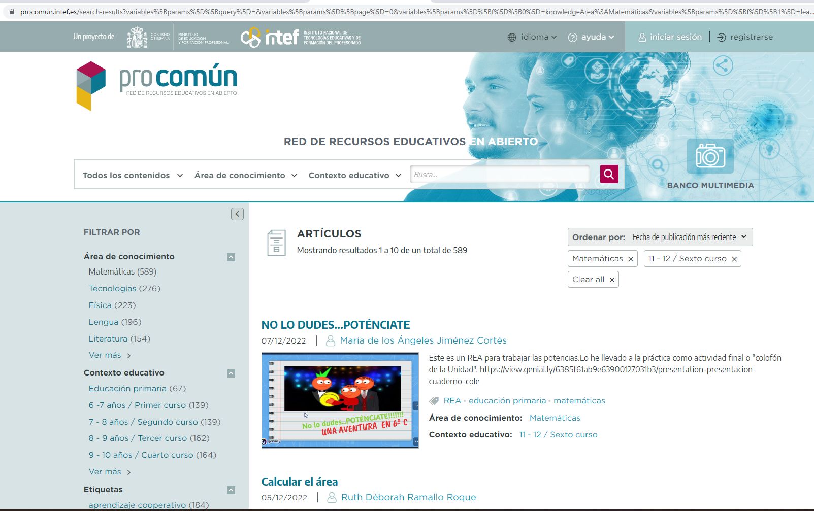 - En todos ellos puedes centrar la búsqueda en función del nivel educativo o el tema que te interese.