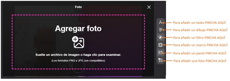 - Texto: Una vez pinchado en el icono te dará opciones para elegir el estilo o fuente y, posteriormente, el color de la fuente y del trazo o sombra y el fondo del texto.
