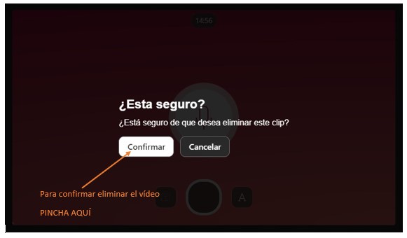 - Repetir(si no nos ha gustado). Esta opción eliminará el vídeo. Si eliges esta opción te pedirá confirmar que realmente quieres eliminar ese vídeo y puedes volver a empezar..