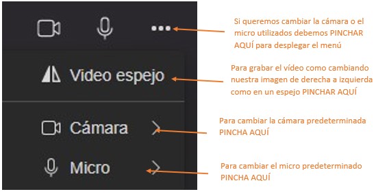 - Puedes elegir más opciones de cámara y micro pinchando en los tres puntos horizontales.