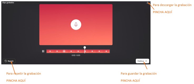 - Publicar, para guardar la grabación en Stream, y a partir de ahí puedes trabajar en Stream como con cualquier otro vídeo.