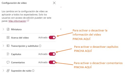 - Puedes activar o desactivar la información del video, los capítulos y los comentarios.