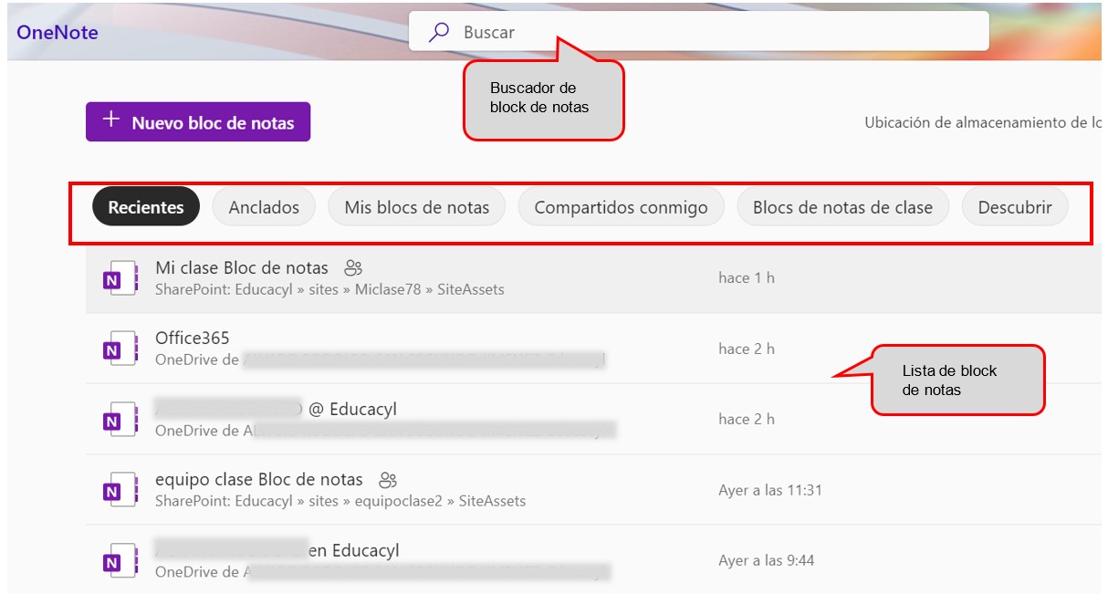 La aplicación OneNote permite abrir un Bloc de notas existente y crear uno nuevo
