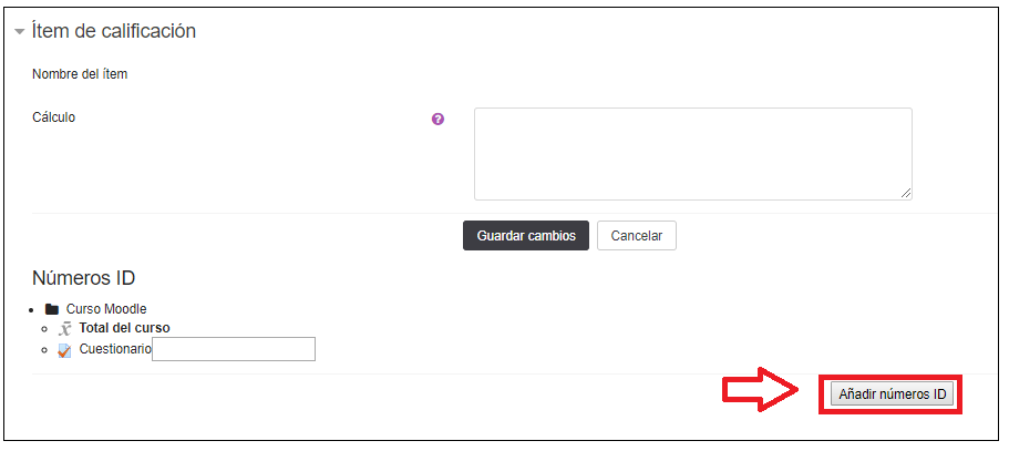 calificación, mediante el icono con la calculadora que aparece debajo del Total del curso.