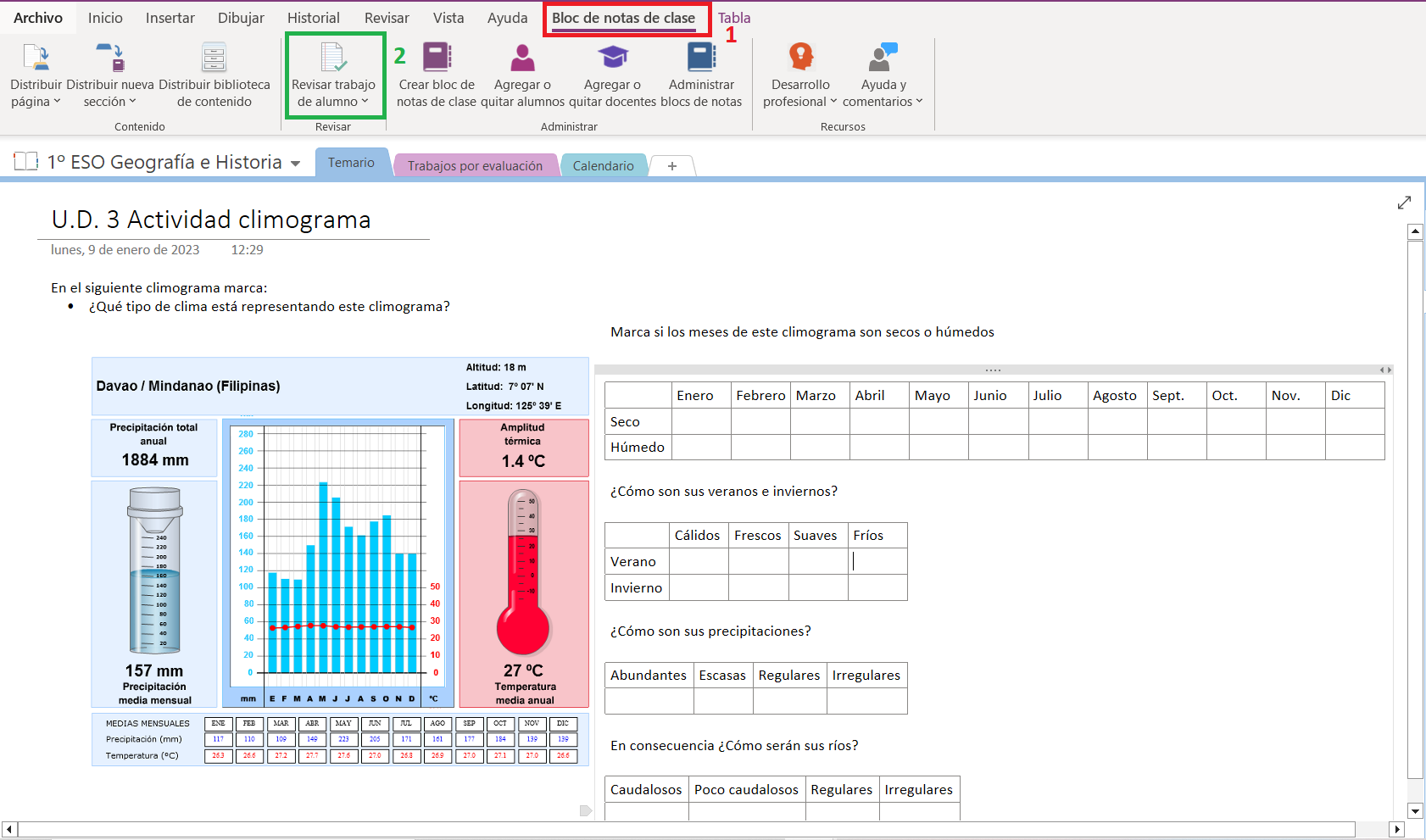 Además, podemos revisar el trabajo del alumnado de forma rápida en el menú superior, en la opción Bloc de notas de clase, picando en Revisar trabajo de alumno.