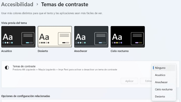 - Temas de contraste: al seleccionar un tema diferente, se simplifican formas y se mejora el contraste entre los diferentes elementos.