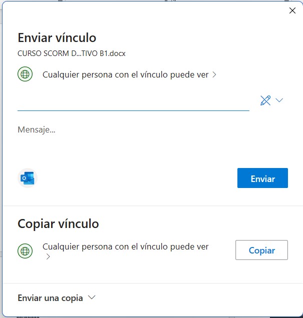Copiar vínculo: el programa te facilitará un vínculo que podrás compartir con quienes quieras realizar el trabajo colaborativo.