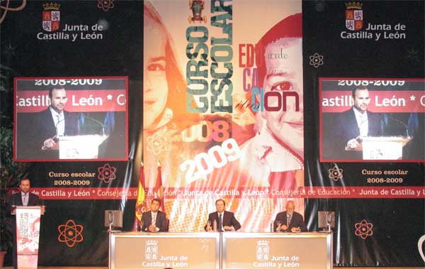 Un año más el Presidente de la Junta de Castilla y León, inaugura el curso escolar 2008-2009 junto con el Consejero de Educación y el alcalde de Ponferrada.