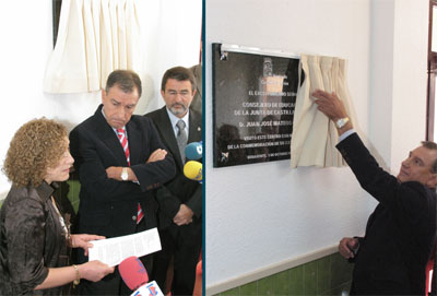 Asiste al acto el Delegado Territorial y el Director Provincial de Educación. Son acompañados en todo momento por la Directora del centro quien junto con el Consejero descubre una placa conmemorativa del acto.